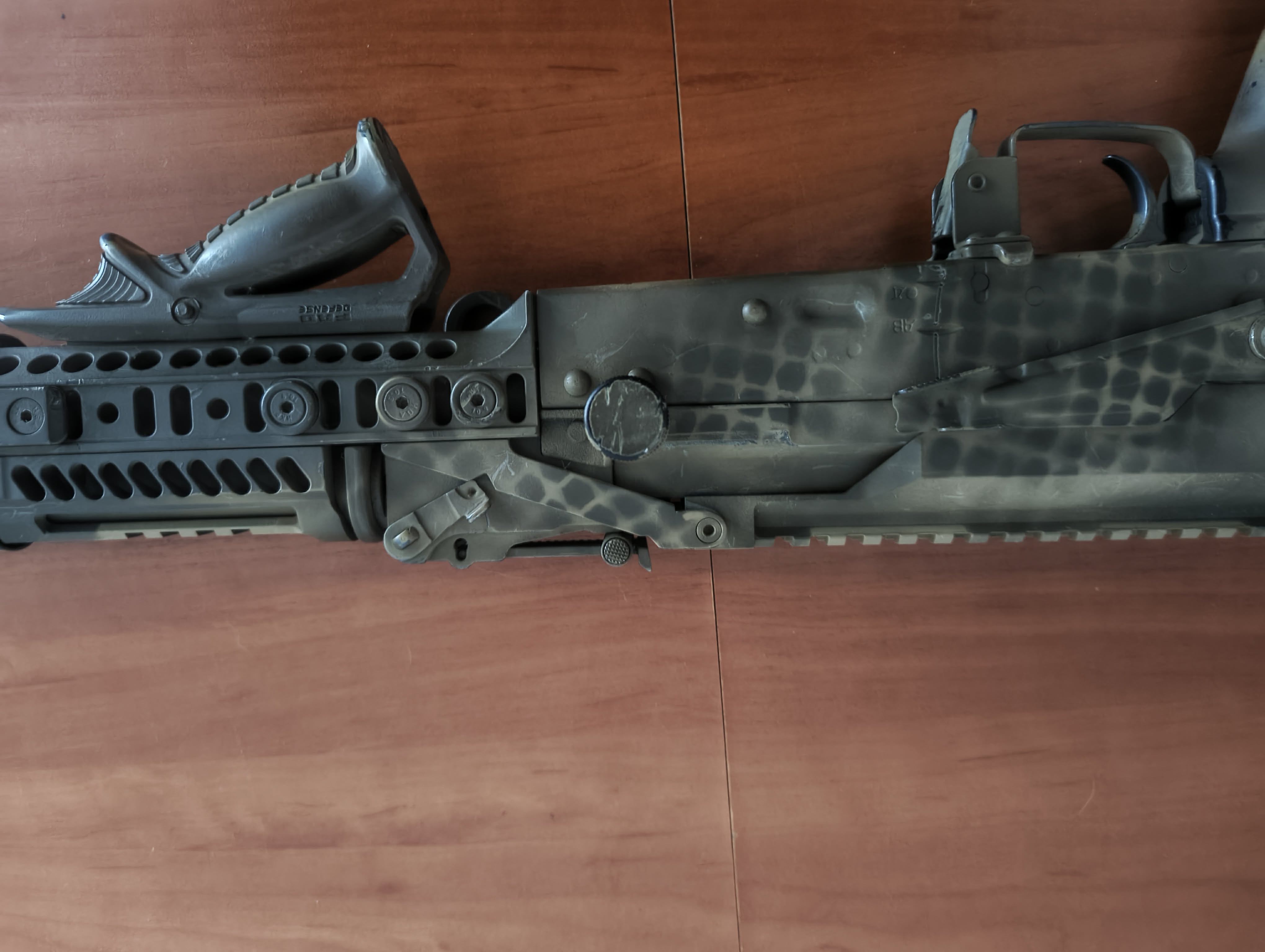 Siema Przerzucam się na gaziaki, więc powoli sprzedaję to co mi zostało z aegów. Na początek, pod młotek leci znany i lubiany AK105 od E&L. Jak widać na zdjęciach, większość elementów zewnętrznych została wymieniona na repliki zenitów i nie tylko. Bebechy też były wymieniane w większości. Do repliki dorzucam fabryczne "meble" oraz 8 magów. Malowanie własnoręczne sprayami Fosco. Replika strzela ładnie i relatywnie daleko (ok. 60-65m) ale można lepiej. Gearbox jest szczelny, ale dysza jest za krótka, przez co komora nie trzyma powietrza w pełni i replika ma tylko 1J. Sprawa łatwa do naprawy, ale ja już nie mam chęci nigdy więcej dotykać aega, już nie wpominając o otwieraniu ich. :D Lista externali: - 5KU front Sport-1 + szyny RIS + pokrywa B33 - 5KU kolba PT-1 Gen.2 - 5KU RP-1 - Kizuna Works Tłumik segmentowany DTK-P - FAB Defence Chwyt przedni PTK - Asura Dynamics chwyt RK-3 - wymaga dalszego rzeźbienia w środku, bo psuje osiowość gearboxa. Lista internali: - Silnik Chai-Ha 28TP - Sprężyna Guarder M120 - Dysza Epes - Zębatki SHS - Cylinder z głowicą i tłok były wymienane, ale nie pamiętam już dokładnie na co, chyba FPS Softair - Gumka Maple Leaf Supermacaron 60 - Dystanser Maple Leaf Omega - Lufa też nie pamiętam jaka dokładnie, ale na pewno DaVinci lub Lamba (półka 300-400zł). Wymiary 6.01x455mm Magazynki siedzą ładnie i podają bez problemu: - 3 Midcapy Cyma (pojemność 130 kulek) - 5 Low/Midcapów Arcturus (zmienna pojemność 30 lub 130 kulek) Cena za wszystko z wysyłką to 2800zł. Chętnie też rozważę zamianę na: - M1 Carbine od King Arms - Springfield M1903A3 lub A4 od G&G - XM177E2 od VFC