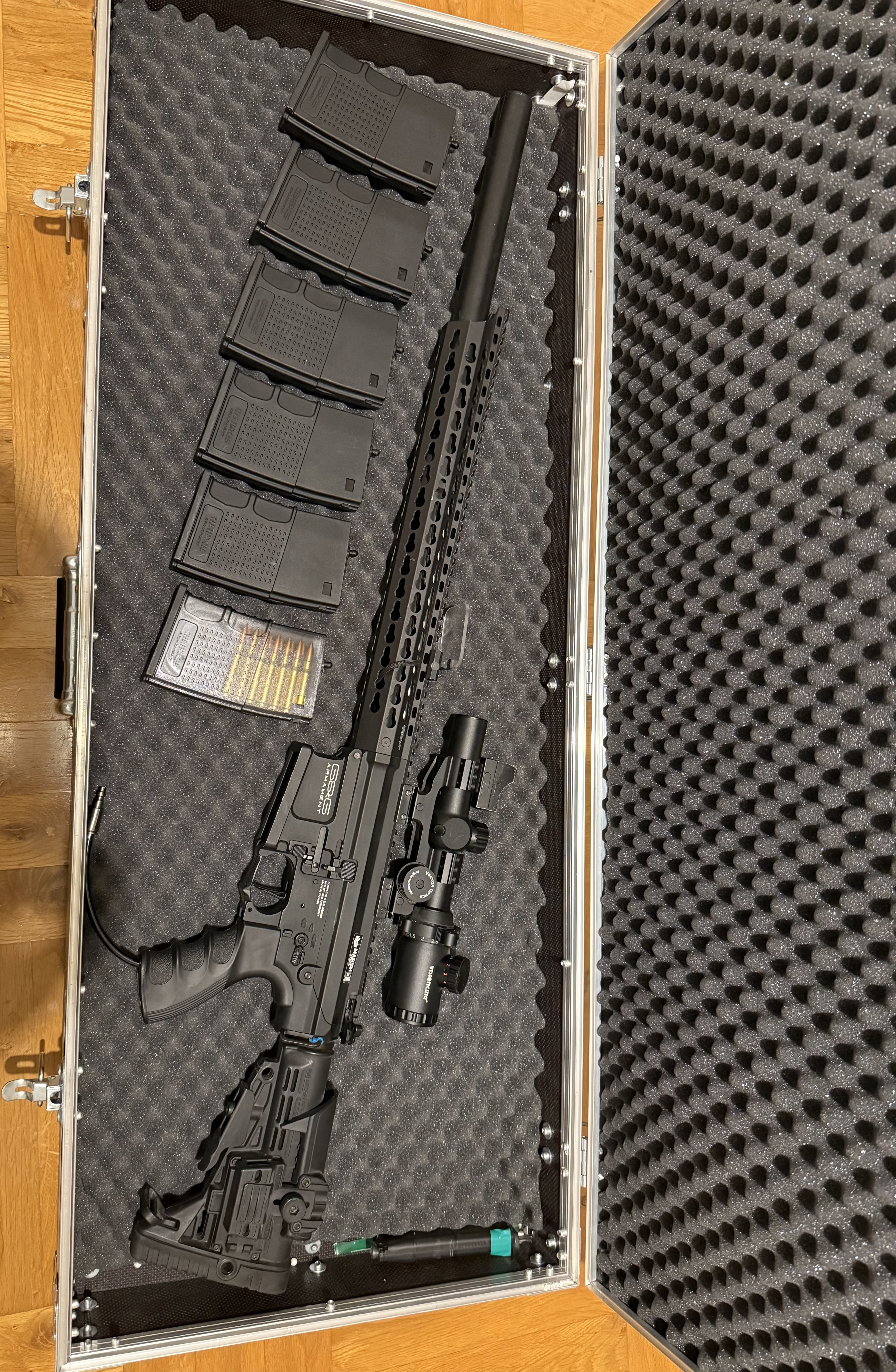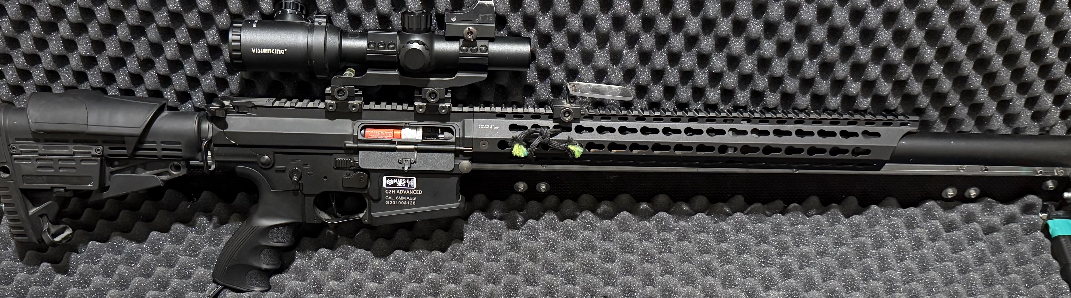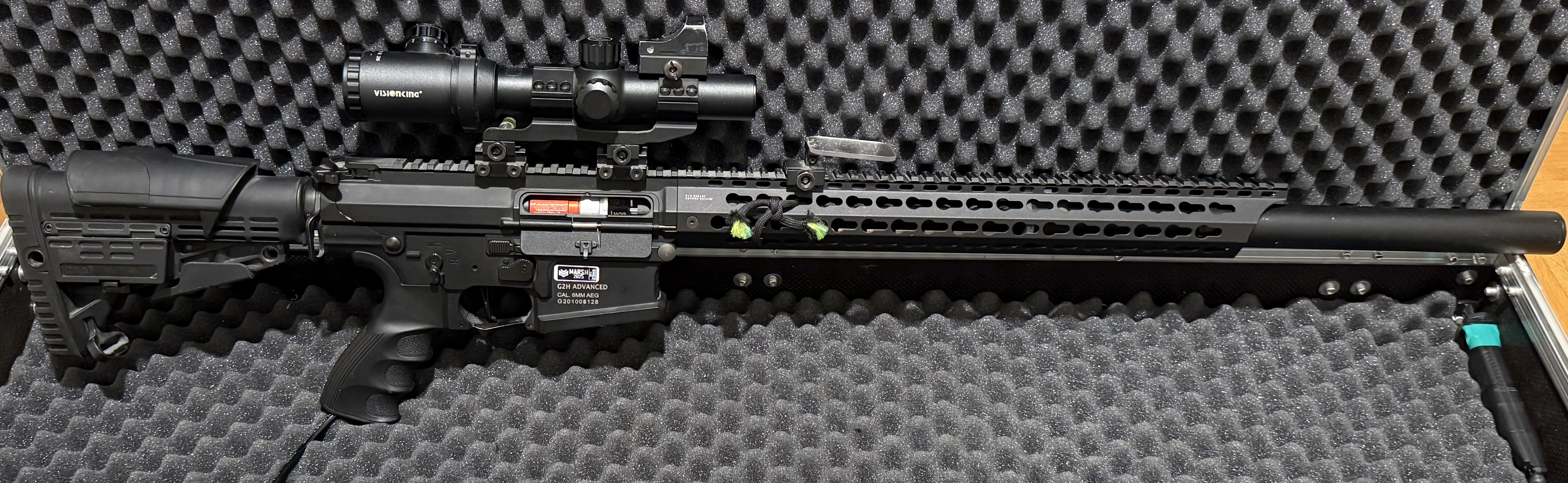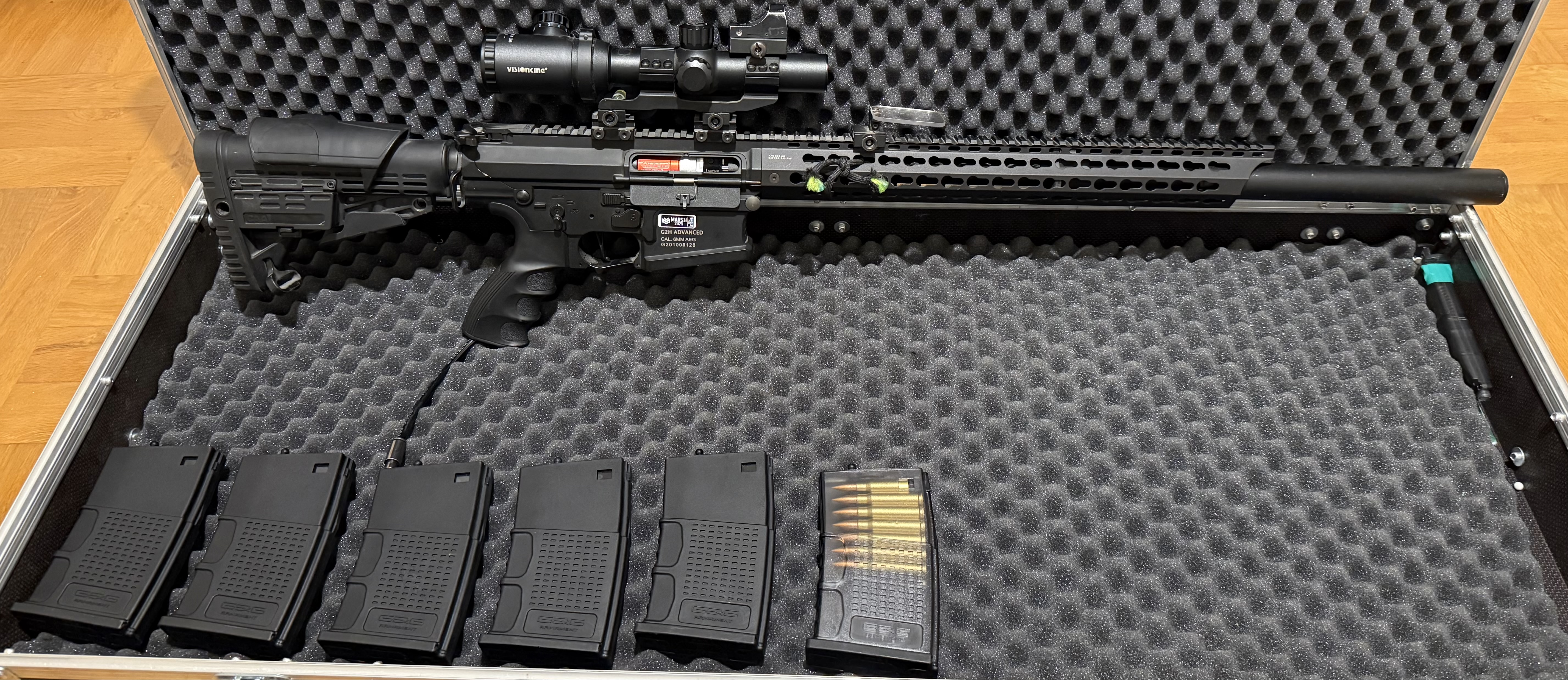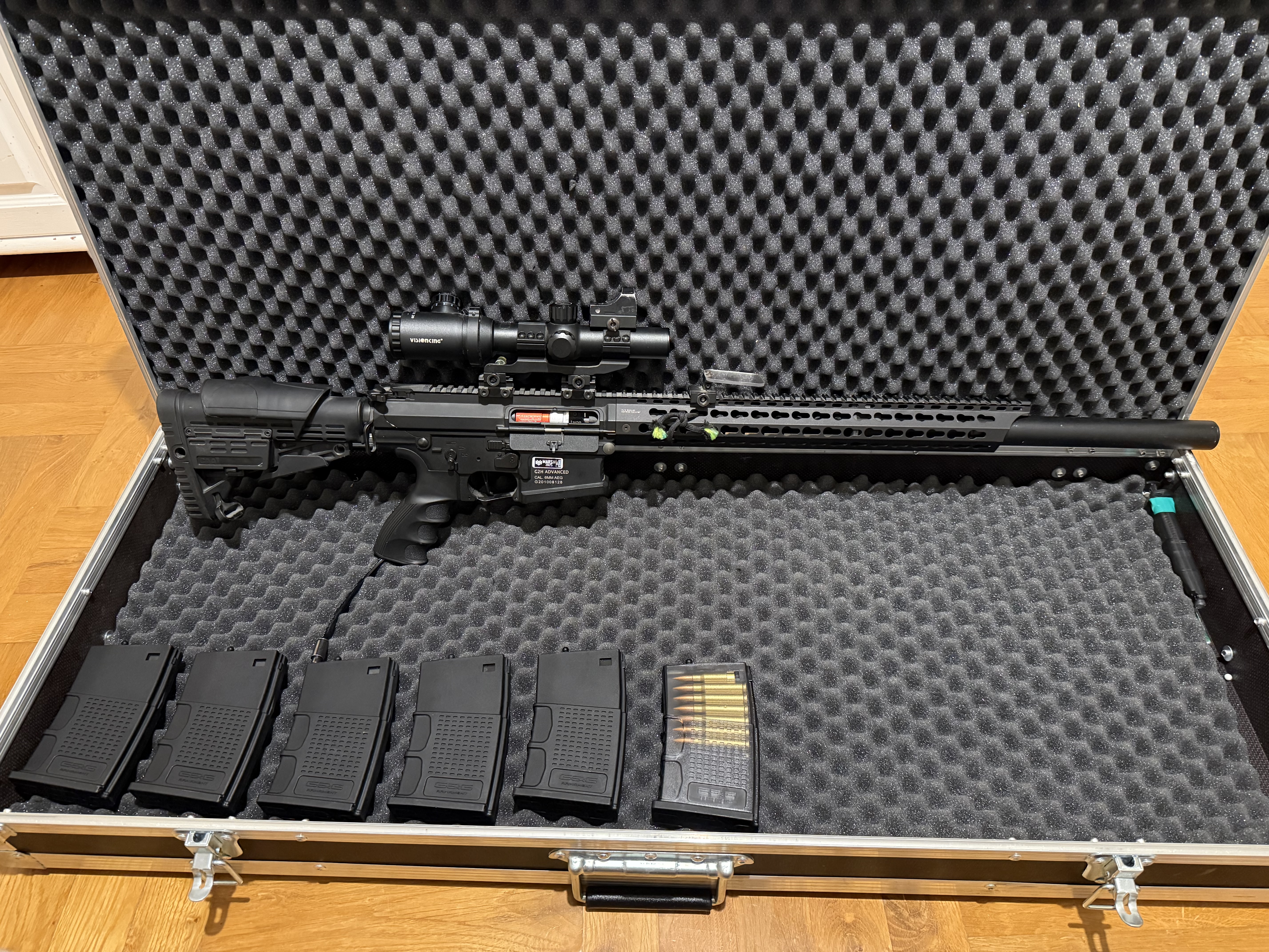 Witam, Posiadam na sprzedaż replikę ASG z Body TR16 MBR 308WH G&G w bardzo dobrym stanie, zadbana i w pełni sprawna. Idealna dla osób szukających solidnego sprzętu do gry. Cena: 3100 zł W zestawie: - Kolba z regulowaną baką policzkową, - 5 dodatkowych magazynków firmy G&G, - 1 magazynek oryginalny, - System HP z silnikiem Minecraf. - Luneta vector optic z podświetlanym krzyżem celowniczym i powiększonym pierścieniem regulacyjnym - Kolimator na lunecie - Ochrona optyki (dorzucę dodatkowe szybki na wymianę jak zlokalizuje) - Podwyższony montaż z libelą i Angle indicator - Komora hop-up retro arms - Lufa precyzjna 509mm Lambda Stan: Replika działa bez zarzutu. Jedyny mankament to selektor ognia - działa tylko z jednej strony, jednak nie wpływa to na użytkowanie. O sprzęt dbano. Gotowa do użycia odrazu po zakupie. Możliwość zakupu bez osprzętu.