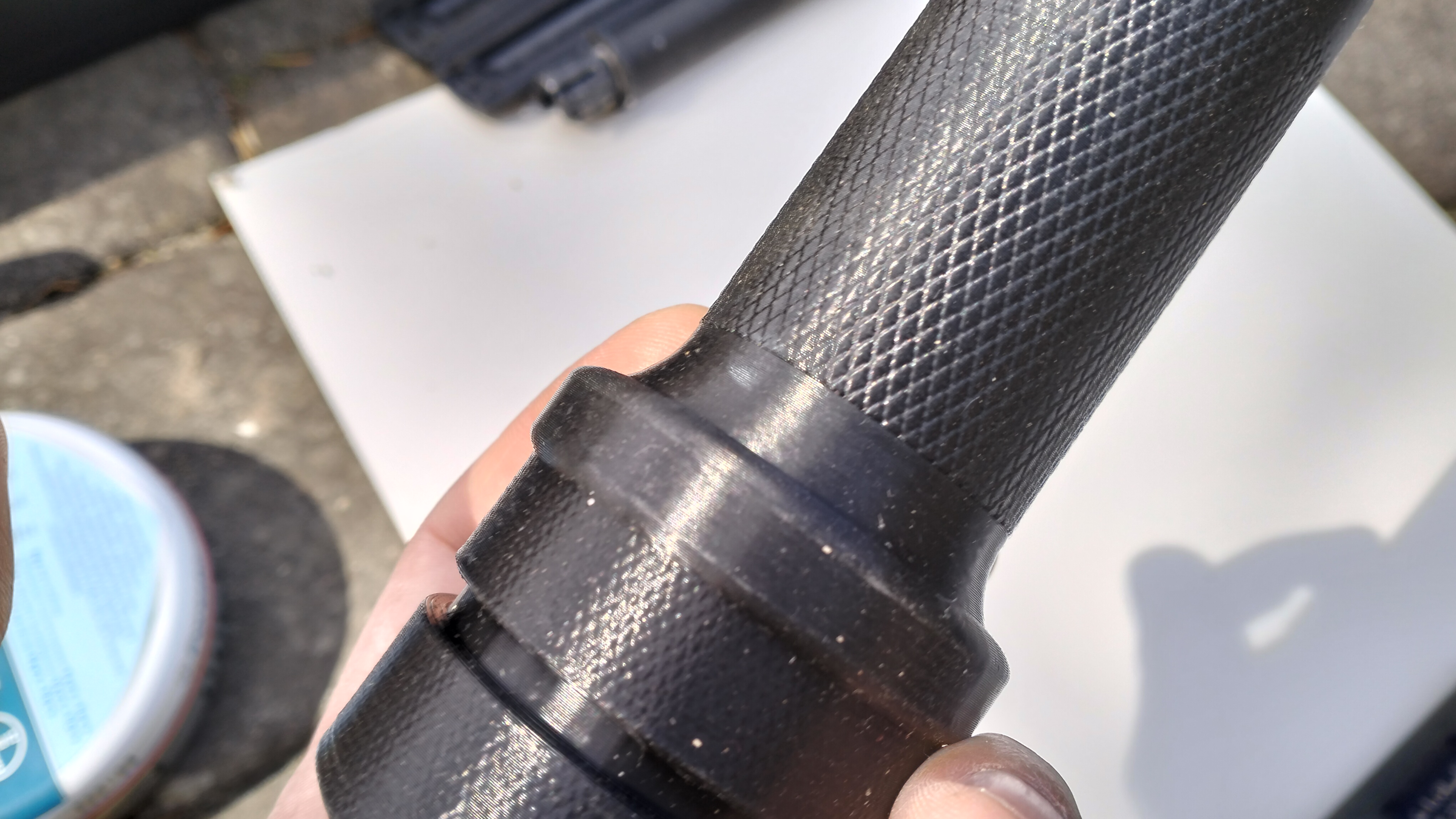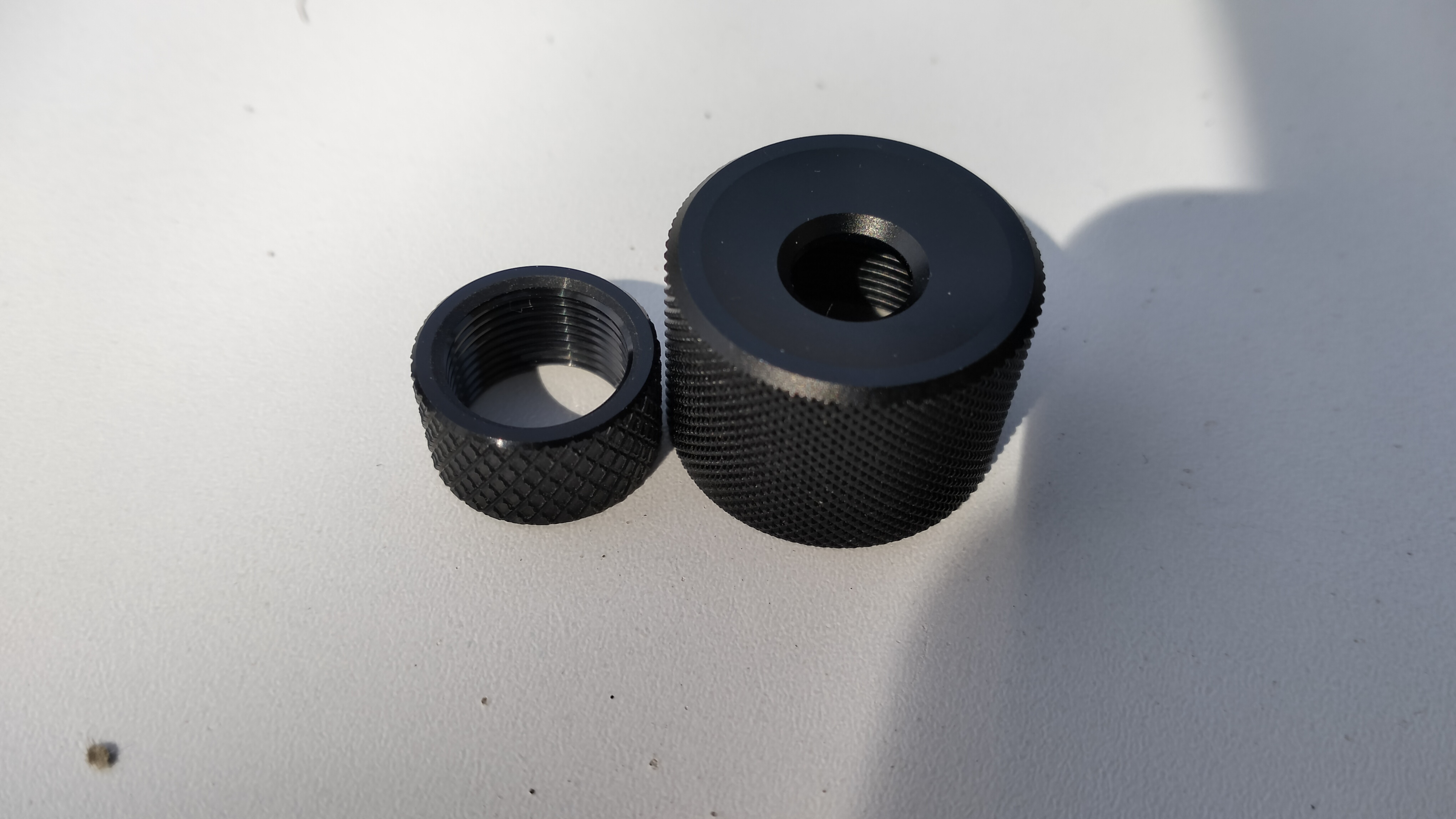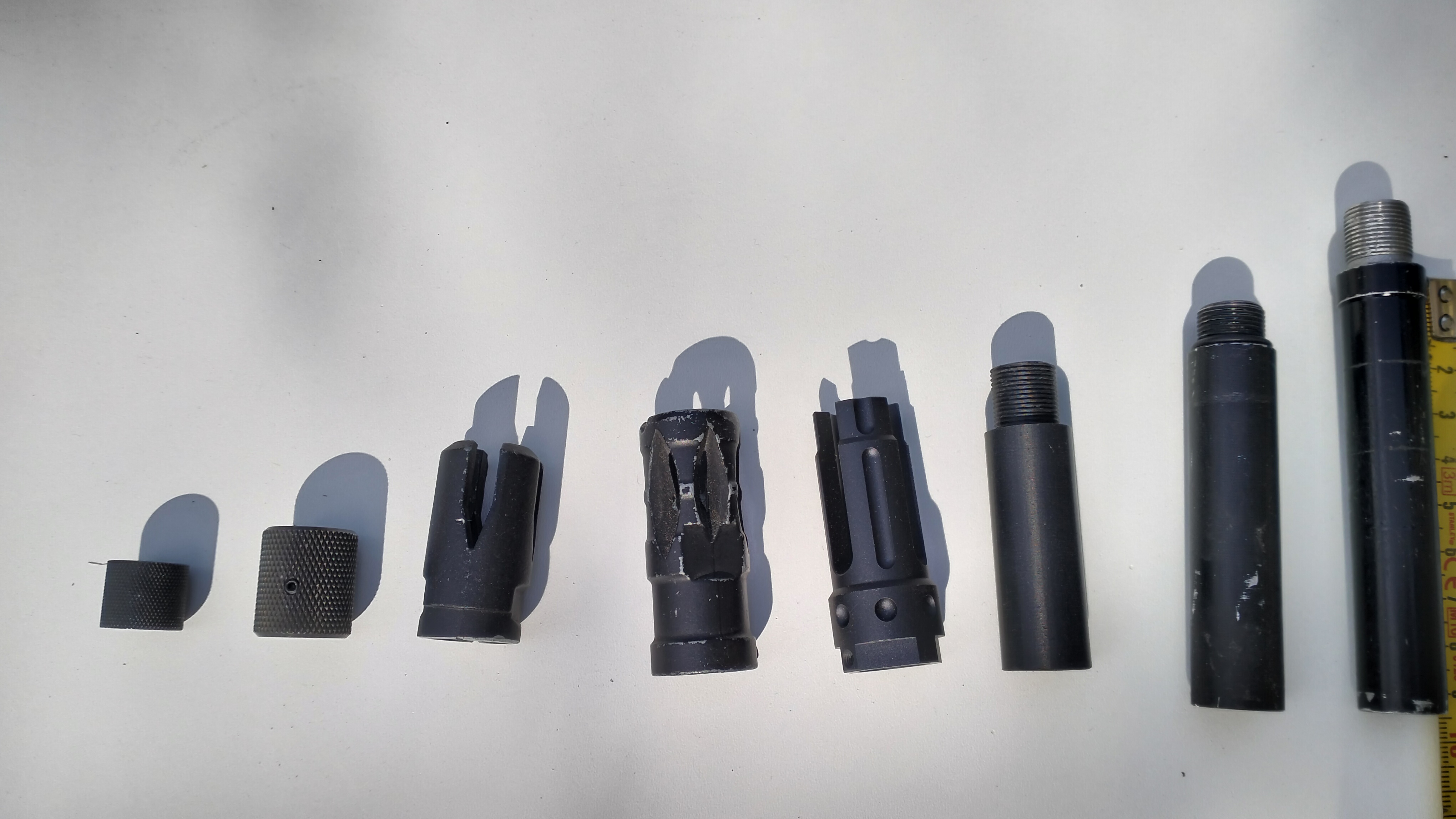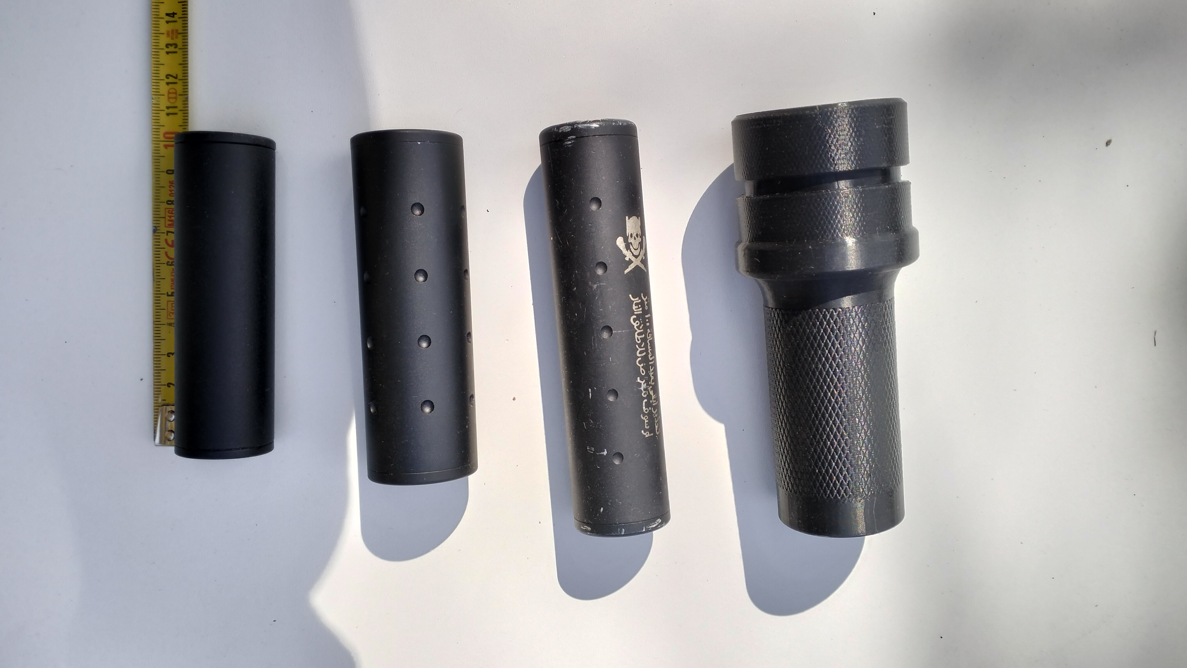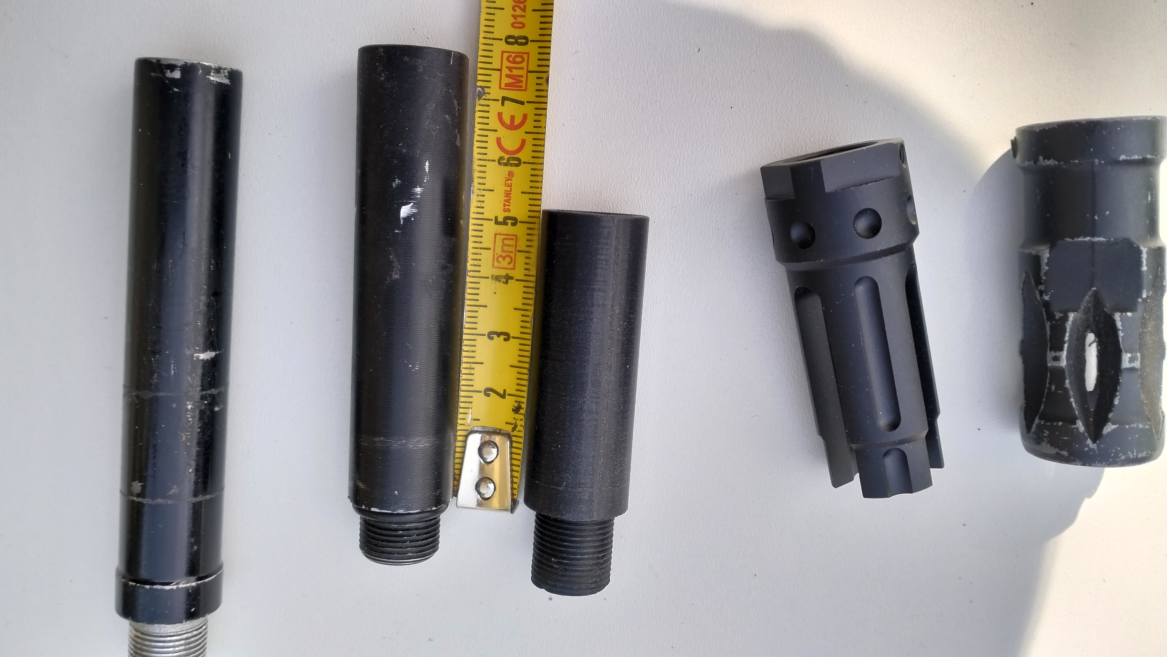 Do sprzedania różne nakrętki na lufę -14mm. Tłumiki mają dwa gwinty + i - 1. Nakrętka ochronna alu na gwint -10zł 2. Nakrętka/dekiel stal ze śruba kontrującą -20zł 3. Cięty tłumik od G36 -10zł 4. Tłumik z jakiejś chyba Mki, pokroju boyi -15zł 5. Tłumik z Noveske cyma lub DE -25zł 6. Przedłużka wydruk -10zł 6,7. Przedłużka -15zł Mam jeszcze fabryczny dekiel do Silverback + zabezpieczenie gwinty do adaptera -14mm -20zł Tłumiki dźwięku po 30zł. Powinny mieć coś w środku -filc/gąbka. Tłumik drukowany ok 20zł. Doabra jakość. Mogę gdzieś wystawić.