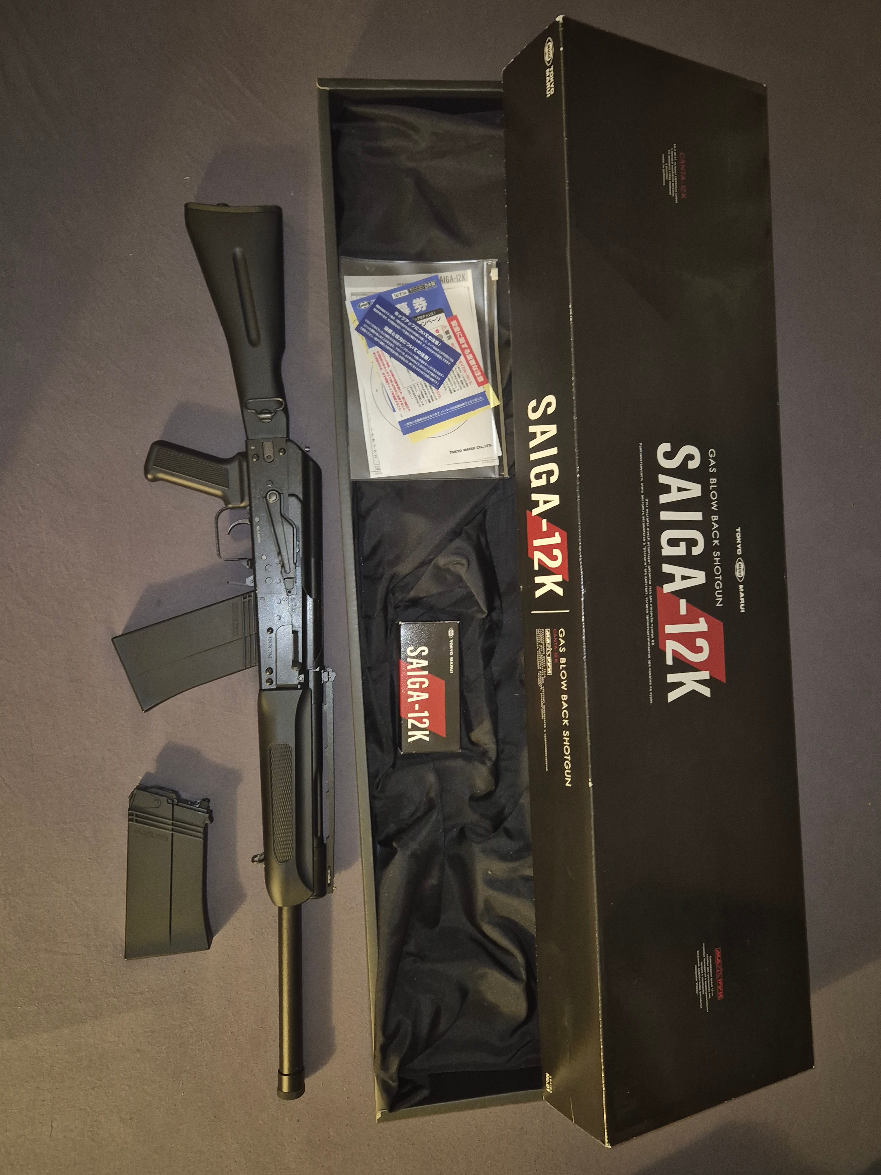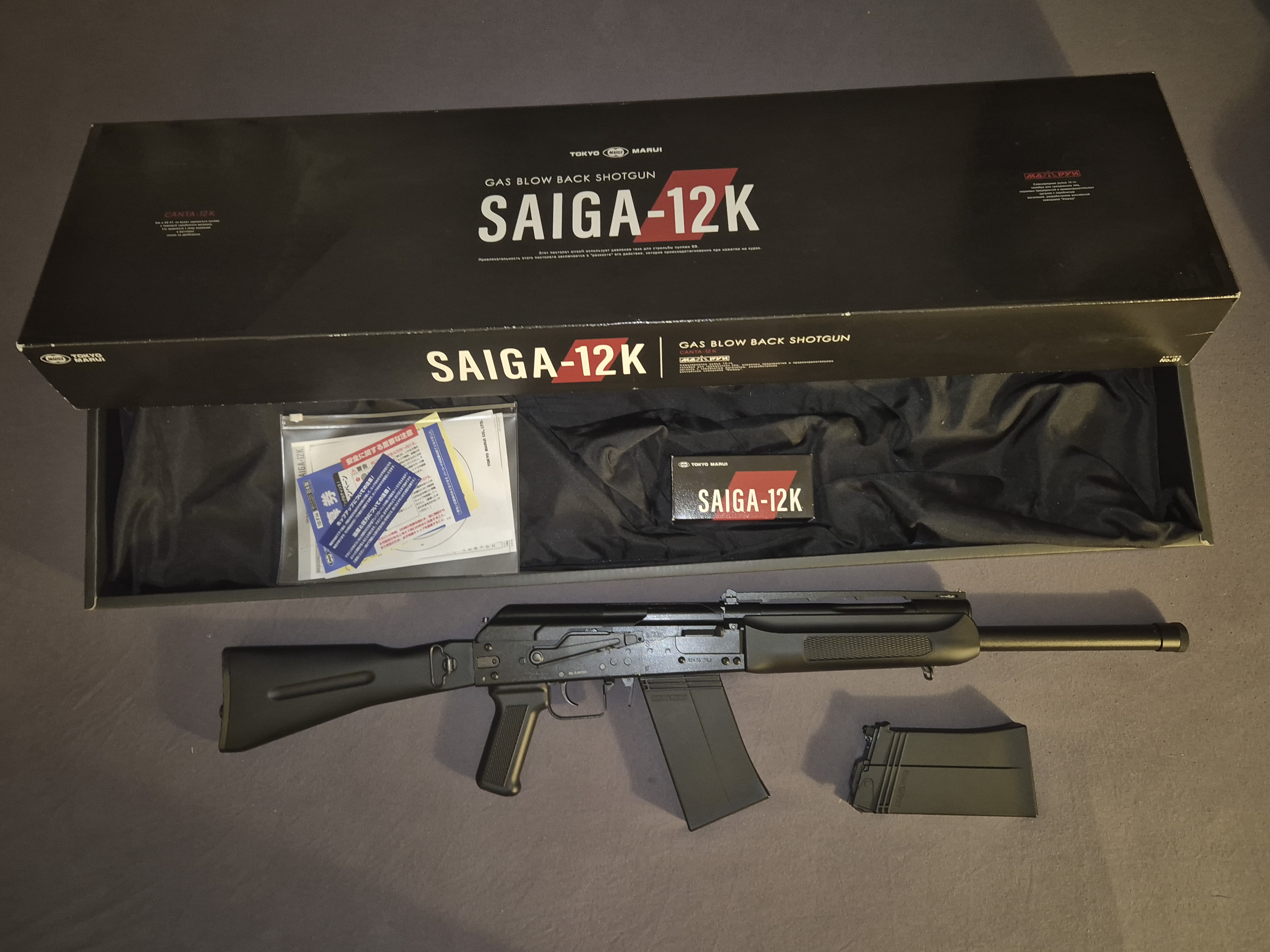 ASG Saiga 12k Tokyo Marui strzelba GAZOWA -Stan dobry -Przebieg około 2 tysiące kulek -Pudełko originalne -Replika bez żadnych modyfikacji W pudełku: -Replika -2x magazynek -Akcesoria -Instrukcja (po japońsku) -Tarcze Replika działa poprawnie Do zasilania repliki potrzebny jest green gas o mocy około 110 psi BRAK GAZU W ZESTAWIE Preferowany odbiór osobisty Pozdrawiam