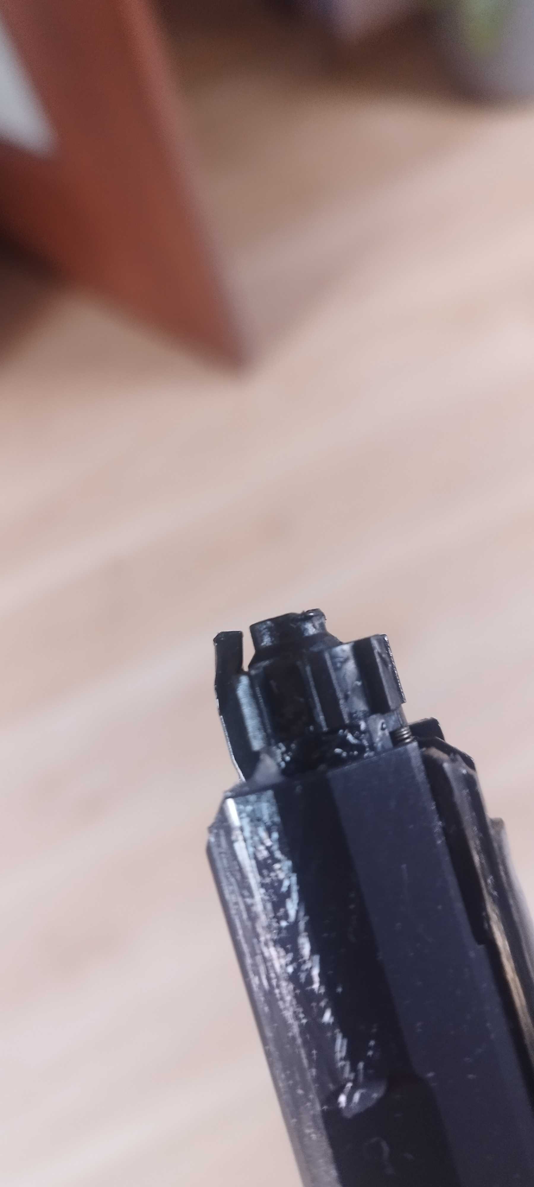 sprzedam Cyme CGS generacji 2 na części lub do naprawy, jak na zdjęciu widać podajnik kulek z nozzle się lekko wykrzywił i z racji braku czasu oraz chęci do naprawy sprzedam karabinek w konfiguracji takiej jak na zdjęciu, w dodatku karabinek po 3-4 strzałach w pełni opróżnia gaz w magazynkach, nie wiem co z nim nie tak. Karabinek ma na ogół przebieg w okolicach 1000-2000 kulek. Jedyne czego brakuje to wkrętu do trigger boxa, gdzieś przepadł, ale w funkcjonalności brak nie przeszkadzał, lekko uszczerbiony jest też gwint tuby kolby, ale nie przeszkadza w działaniu. wewnątrz wszystko bez modyfikacji. Dopóki problemy się nie pojawiły to strzelała fenomenalnie. Karabinek posiada: kolbe MOE Magpul Chwyt pistoletowy Magpul Chwyt przedni Magpul Lunete z riserem 1.5x Victoptics SOI 1.5-5x20 Łoże UTG Pro Arwen M-LOK Free Float 14" Ot, stąd taka cena. Sprzedaje w stanie jak na zdjęciu, z akcesoriami plus dwa magazynki. Przy odbiorze osobistym dorzucę speedloader. Mocno preferowany odbiór osobisty.
