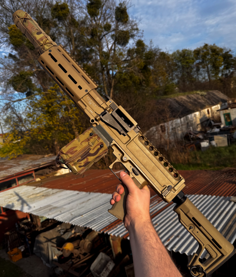 REPLIKA W OGÓLNYM SKRÓCIE: Lekki karabin wsparcia od Secutor, wykonany z metalu i wytrzymałego polimeru. Łączy dużą siłę ognia z dobrą mobilnością jak na LMG. Model posiada łoże M-LOK, regulowaną kolbę oraz górną szynę RIS do akcesoriów. W zestawie znajduje się magazynek box (~1200 BB) z regulacją podawania kulek oraz atrapą taśmy amunicyjnej. SZCZEGÓŁOWY OPIS TEGO MODELU: Replika w dobrym stanie wizualnym i technicznym - po przeglądzie zerowym. Wymieniony silnik na lepszej jakości. Różnice między nowym modelem a tym: Wymieniony silnik.