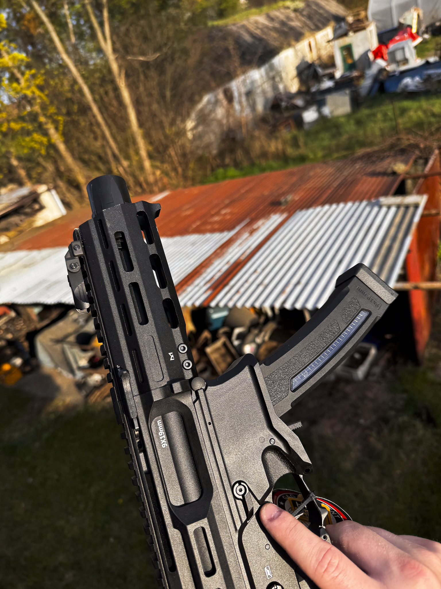 REPLIKA W OGÓLNYM SKRÓCIE: Kompaktowy pistolet maszynowy typu AEG, idealny do CQB. Wykonana z wytrzymałego polimeru i metalu, jest lekka, dobrze spasowana i w pełni obustronna (dla prawo- i leworęcznych). Model posiada składną i regulowaną kolbę, łoże M-LOK oraz szynę RIS do akcesoriów. SZCZEGÓŁOWY OPIS TEGO MODELU: Autentycznie POLECAM sprawdzić jak ta replika brzmi podczas strzelania :D To chyba jeden z najbardziej wyjątkowych dźwięków dzięki zastosowanemu amplifierowi. W idealnym stanie wizualnym i technicznym - po przeglądzie zerowym. Różnice między tym a nowym modelem: Zamontowany układ HAL ETU