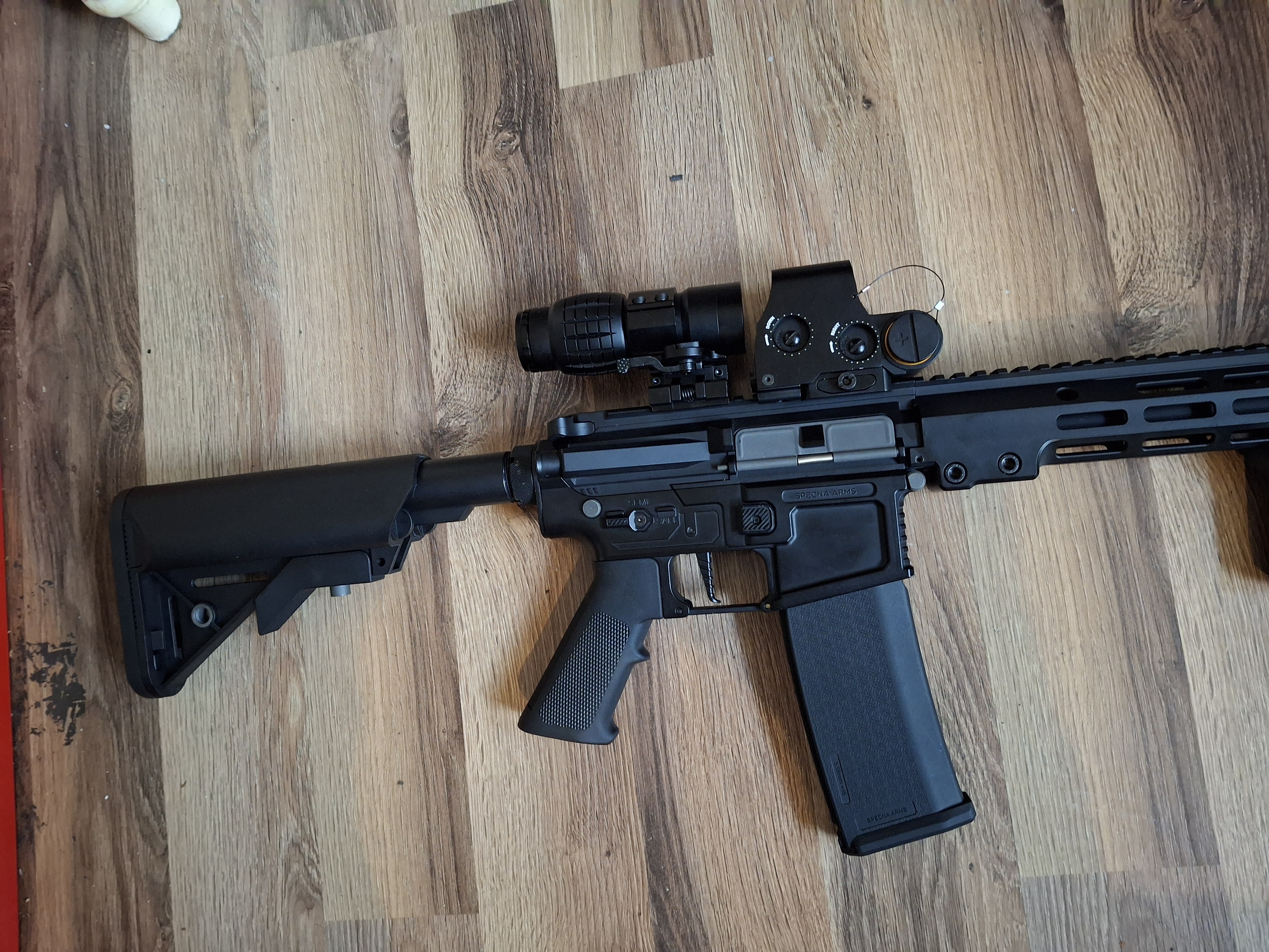 Na sprzedaż leci Karabinek specna arms core sa-c22, do którego dołożyłem kompletny gearbox v2 specna arms Aether hal etu, korpus zmieniony na metalowy, dołożona metalowa prowadnica kolby, do karabinka dorzucam optykę i akumulator 3s wraz z ładowarką. Optyka jest nowa, Karabinek wystrzelał z 1300kulek, Dla konkretnego kupującego dorzucę kilka gratisów