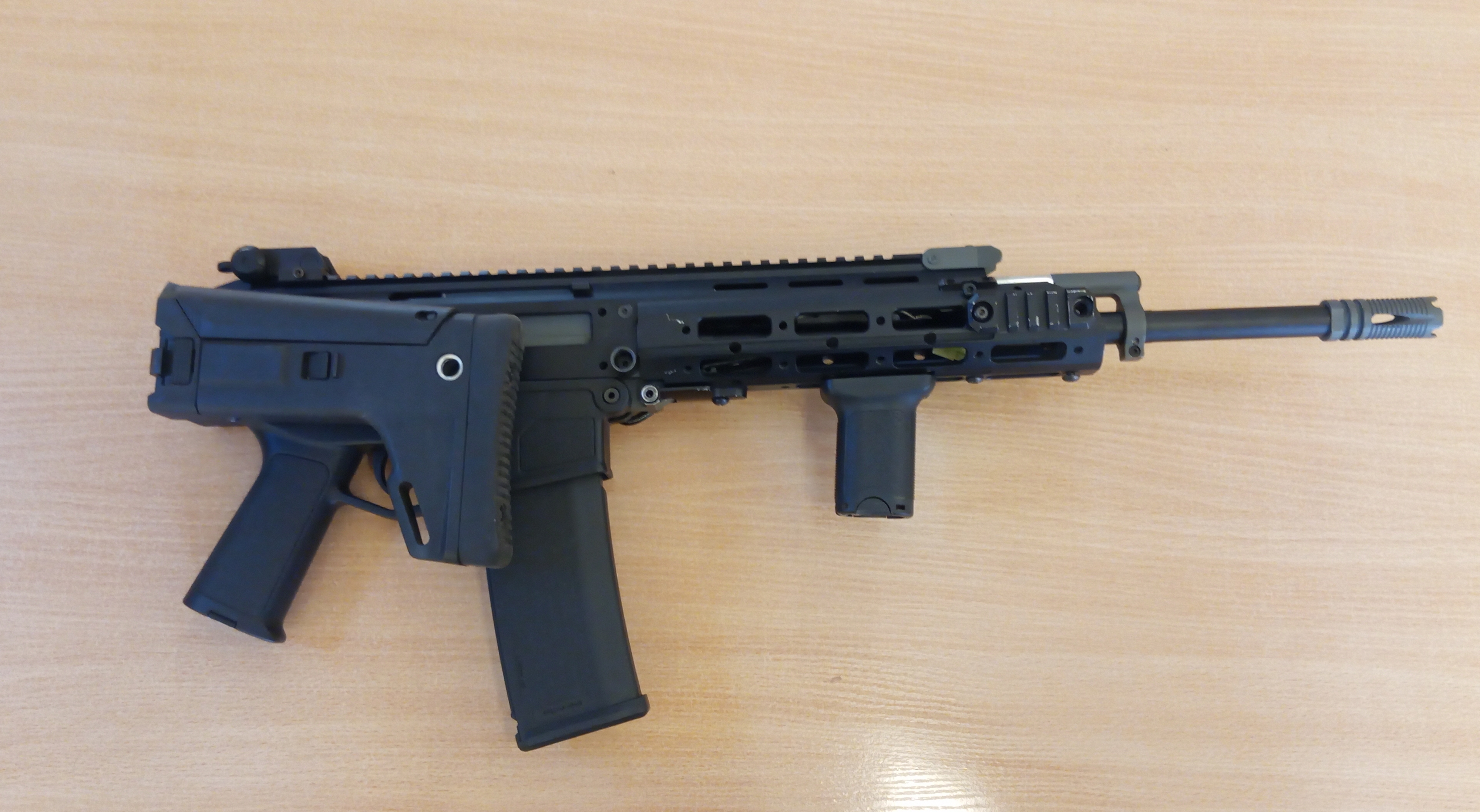 Witam na sprzedaż leci karabin wzorowany na Grot karabin używany przez Polskie wojsko Replika została wyposażona w skladaną kolbe z regulowaną baką i długością Do zestawu dodaje chwyt przedni m-lock oraz dwa magazynki i montaż na zawieszenie qd karabin jest w pełni sprawy bez żadnej wady bez widocznych sladów użytkowania. Replikę można nazwać unikatem gdyż jest to karabin trudno dostępny na Polskim rynku Proszę o kontakt na nr telefonu 570751651 możliwa wysyłka