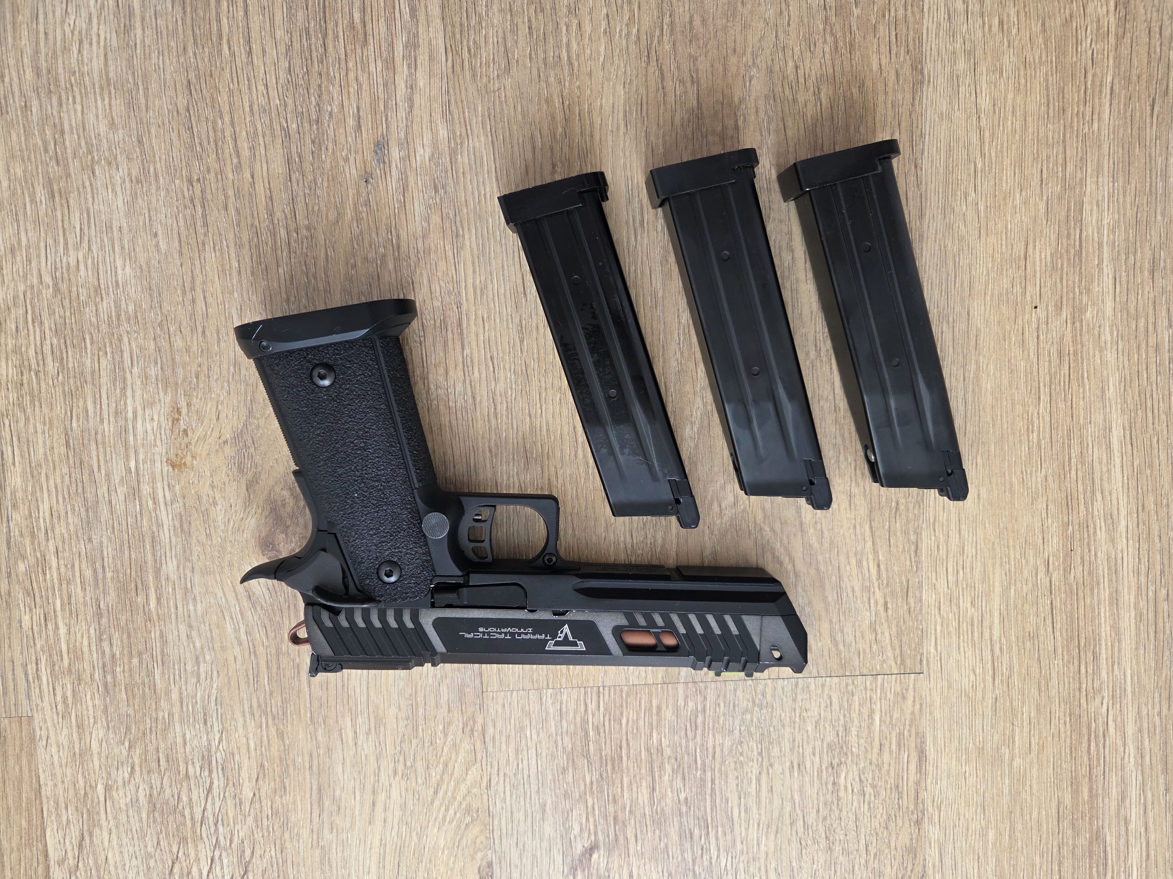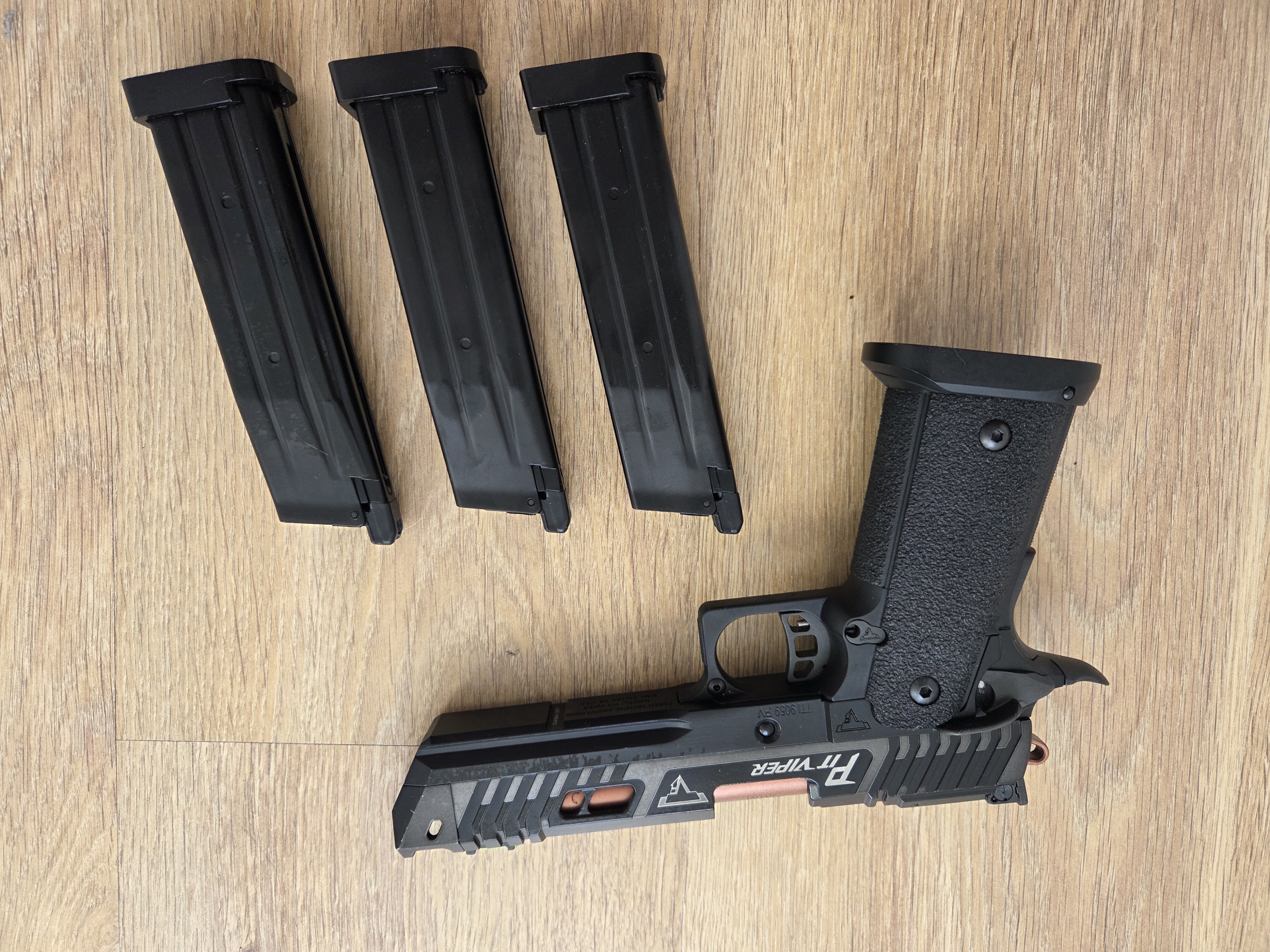 Cześć, mam na sprzedaż replike pit viper, byl na 2 strzelankach, stan bardzo dobry, dorzucam wszystko co na zdjęciach, 2 magazynki I kabure amomaxa z platformą biodrowa. Możliwy dowóz do Wrocławia w konkretnych godzinach.