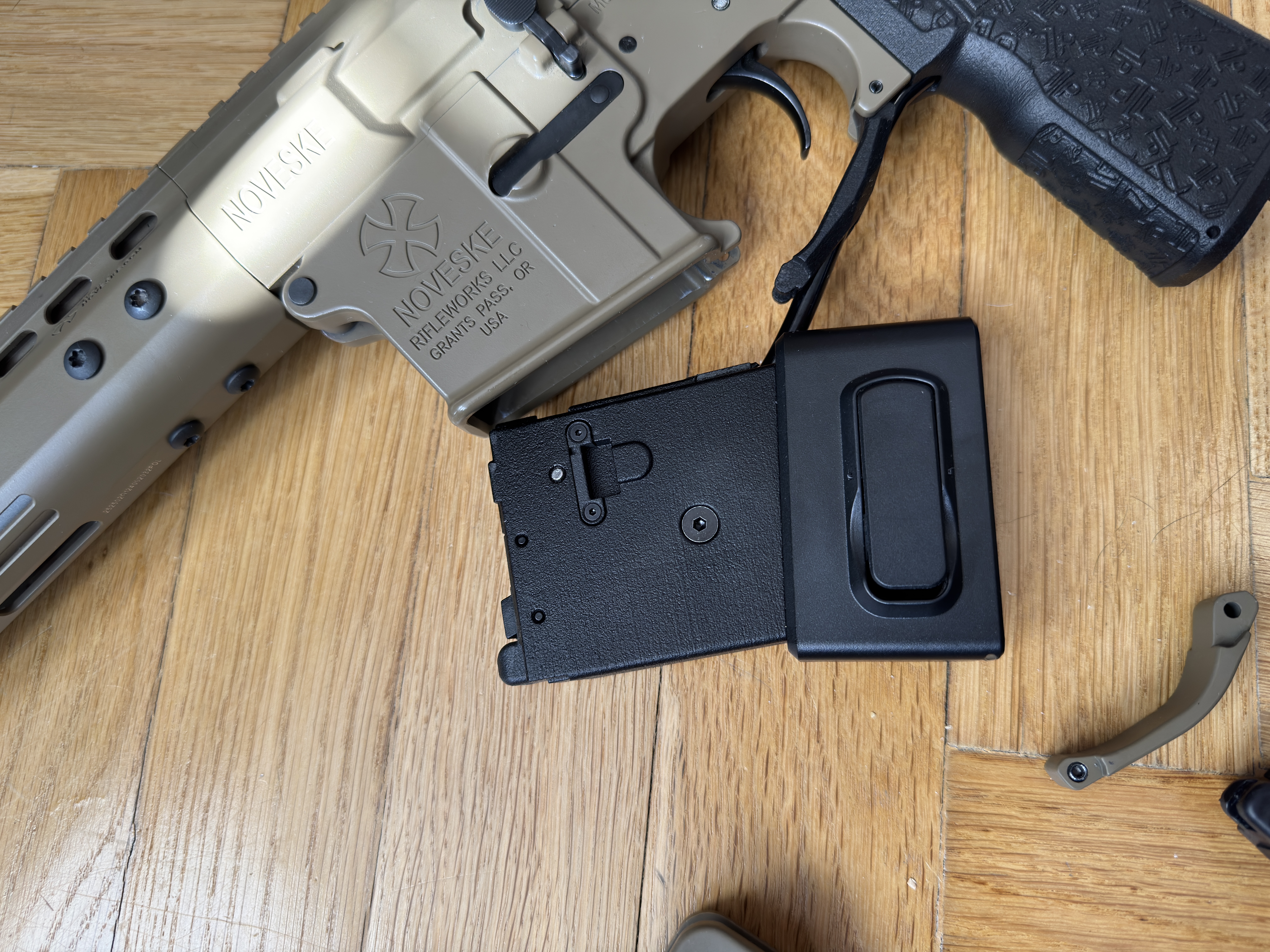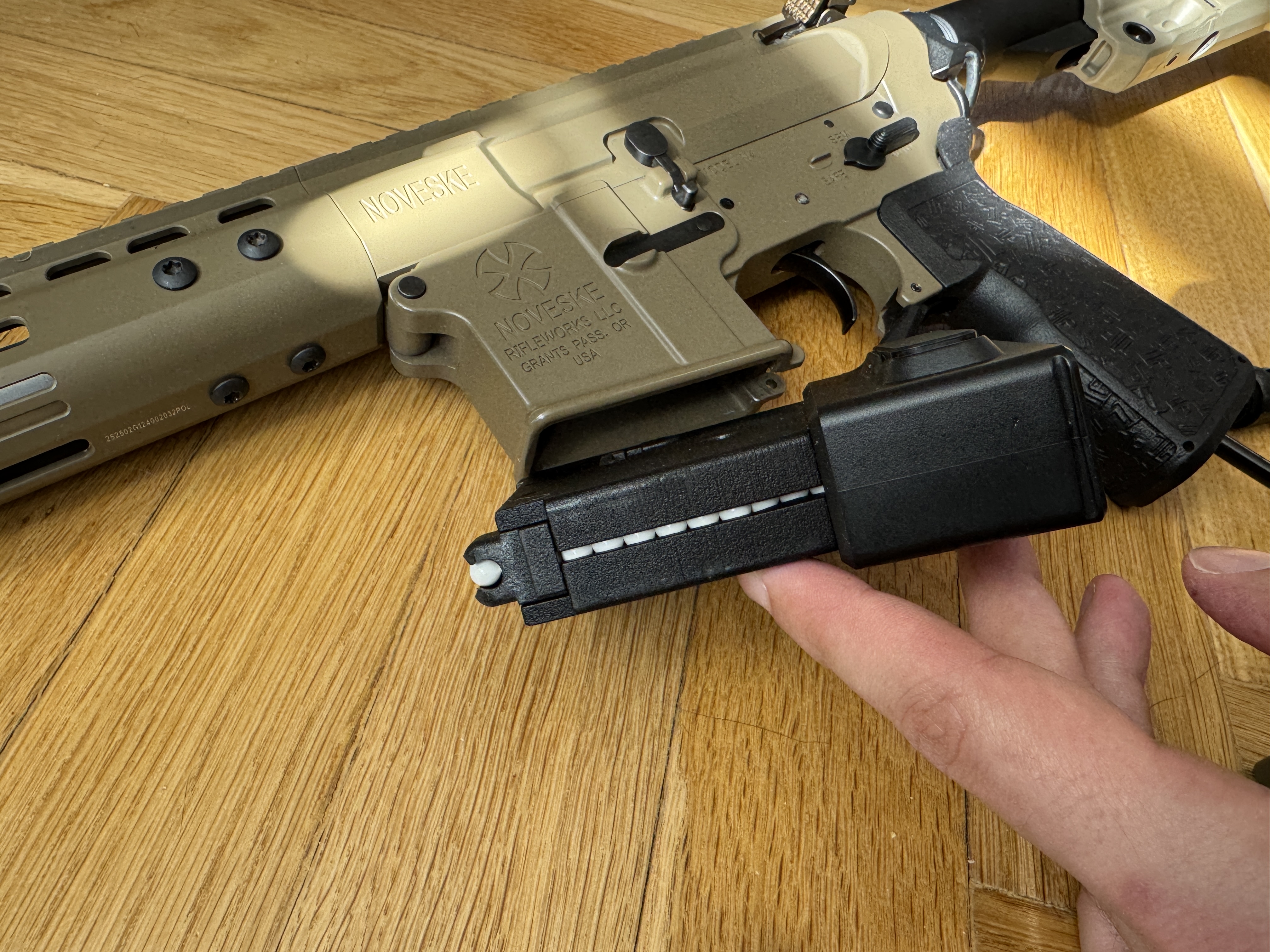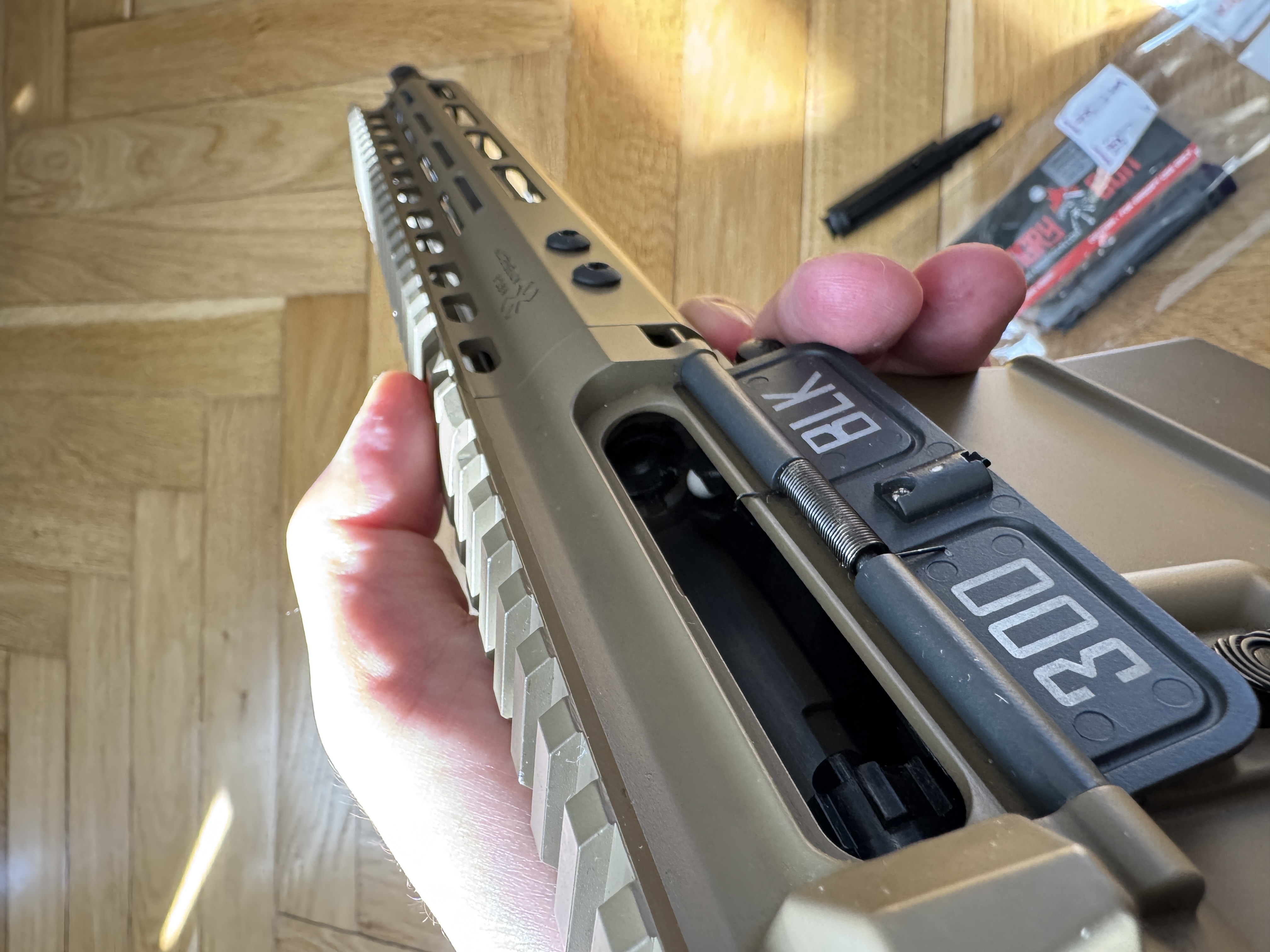 Noveske N4 MWS Gen3 GBBR (EMG, kolor Tan) Układ hop-up: - Gumka Maple Leaf MONSTER 60 –poprawiona celność i zasięg - Dystanser Maple Leaf OMEGA – lepsze skupienie i powtarzalność Magazynki GBB (Green Gas): - 3× Double Eagle MWS, 35 kulek (Black) Konwersja HPA: - Adapter Airtac (Tokyo Marui MWS / DE Noveske) - Chwyt pistoletowy HPA T1P Dead Drop Magazynki AEG: - 4× krótki stalowy magazynek 110 BB do AR-15/M4 (Double Bell, Black) Dysza z npas (upgrade): - Enhanced Drop-In Complete MPA Nozzle Set Gen 2 (do Marui MWS M4) (wcześniej uszkodzony – naprawiona, obecnie działa bez zarzutu) Dodatkowo: - Oryginalna dysza Double Eagle (również naprawiana – zapasowa)