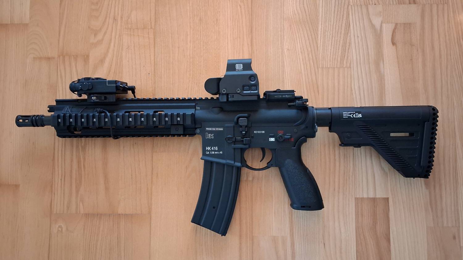 Sprzedam nową replikę elektryczną umarex hk416a5 z możliwością szybkiej wymiany sprężyny. Replika nie była ani razu w polu, tylko przestrzelana testowo + chrono (na 0,20g daje ok 320 fps). W zestawie cały komplet: replika, magazynek hi-cap, instrukcje, karton, replika eotech exps 3-0 bardzo dobrego kolimatora od holy warrior (świetna jakość) i moduł laserowy dbal a2 od wadsn z latarką, laserem zielonym i na podczerwień. Jak na stock ma bardzo przyjemną reakcję na spust i generalnie to gotowy set do cqb tylko można pokusić się o lepszą gumke hop up ale stockowa o dziwo dobrze kręci 0,25g. Sprzedaję, bo mam nadmiar sprzętu i musze zrobić miejsce w szafie :) Zapraszam na odbiór osobisty by zmacać replikę na miejscu i ją przetestować