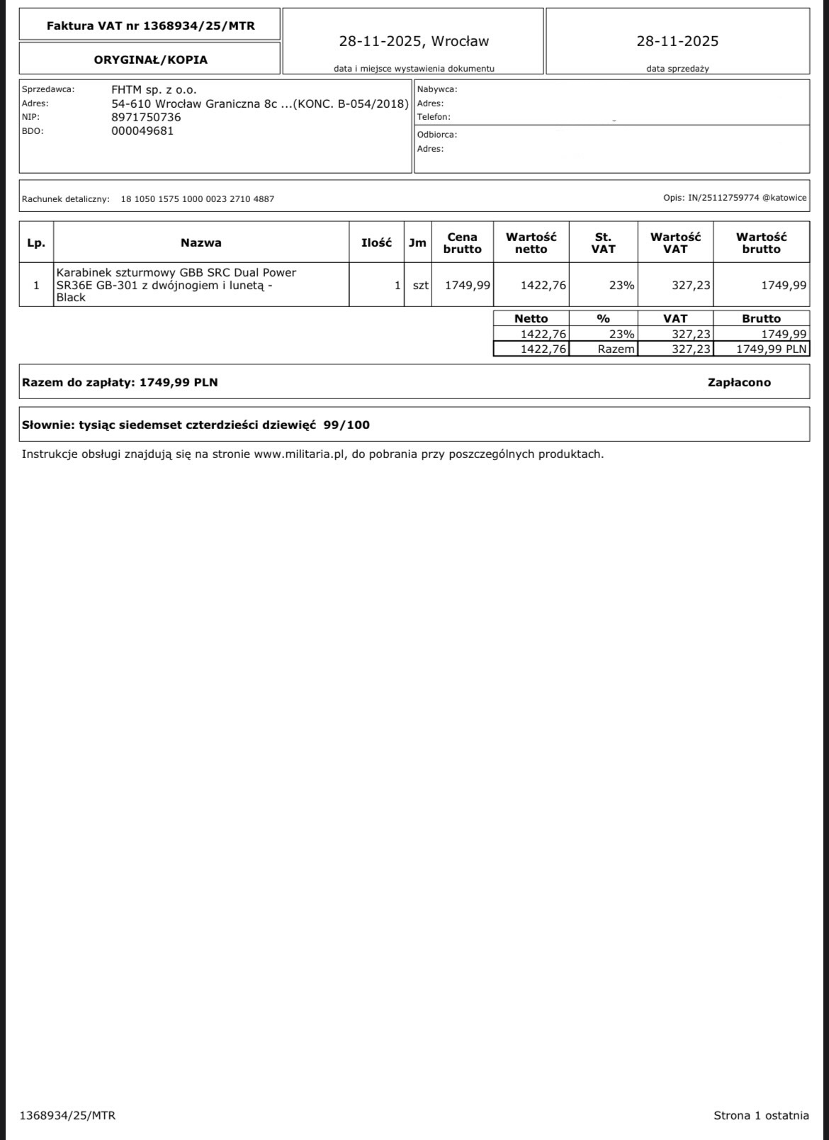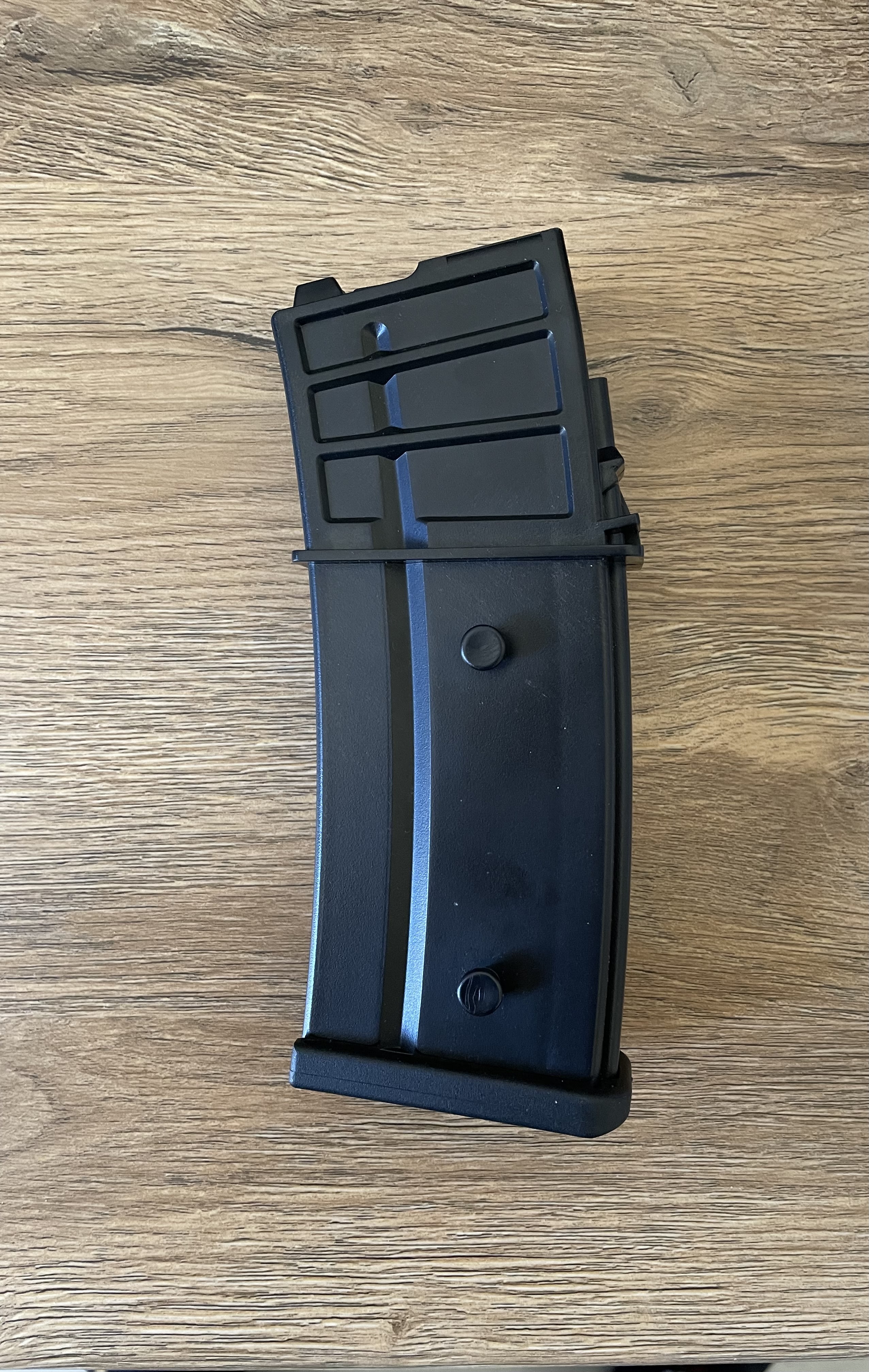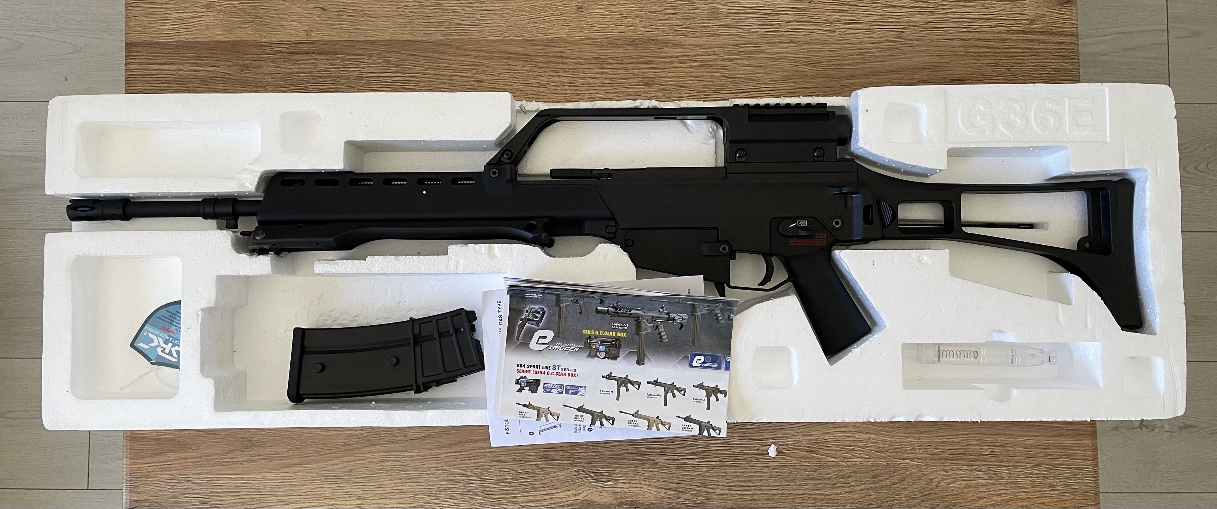 Sprzedam replikę G36E firmy SRC. Sprzedawana w oryginalnym. Dorzucam speedloader i wycior. Kurek w replice znajduje się w pozycji rozluźnionej (nienapiętej). Posiadam jeden magazynek. Napęd na Greengas lub CO2. Korpus repliki jest pomalowany ze względu na nieudany projekt grawerunku H&K. Można za pobraniem cena do dogadania