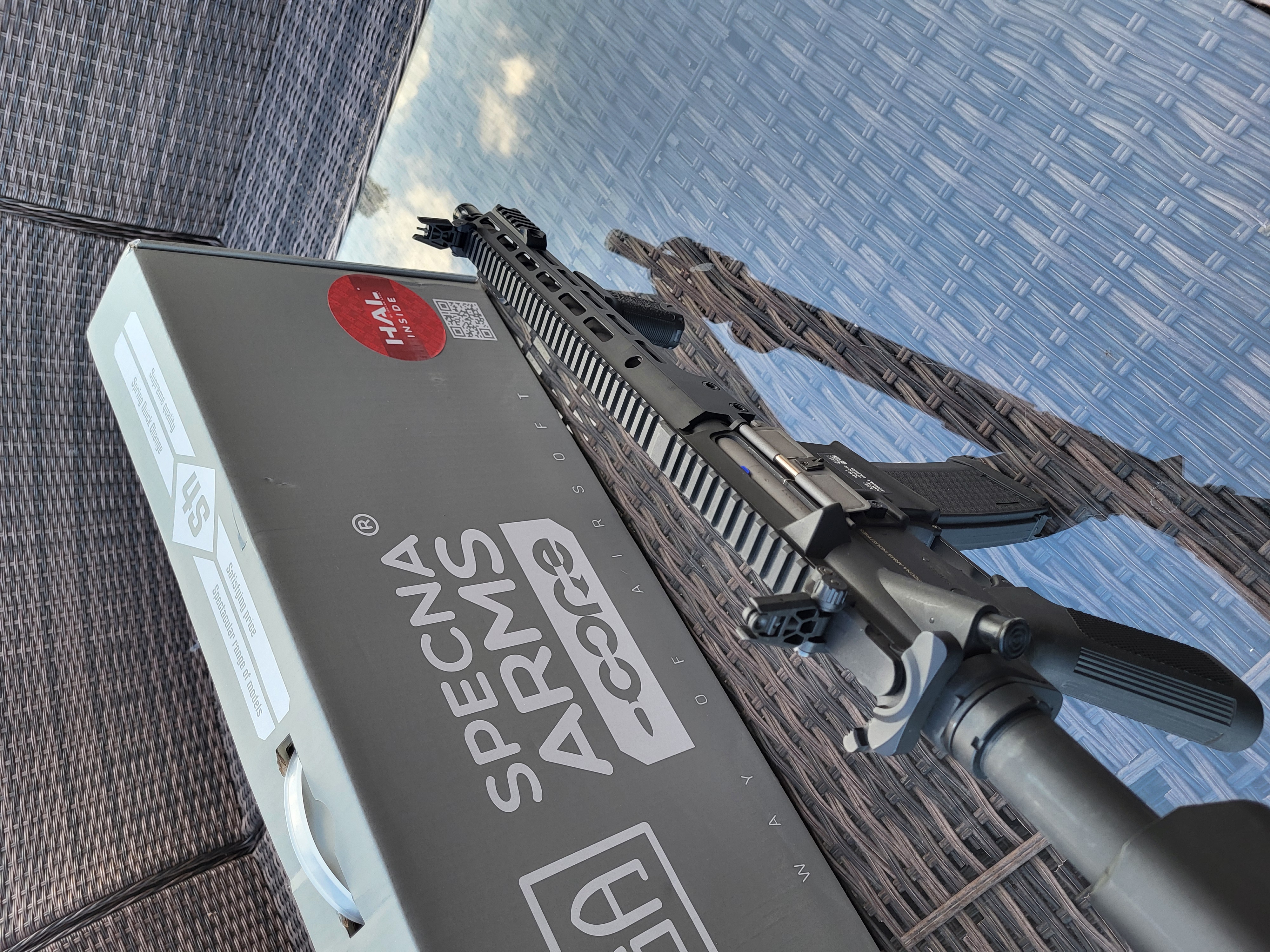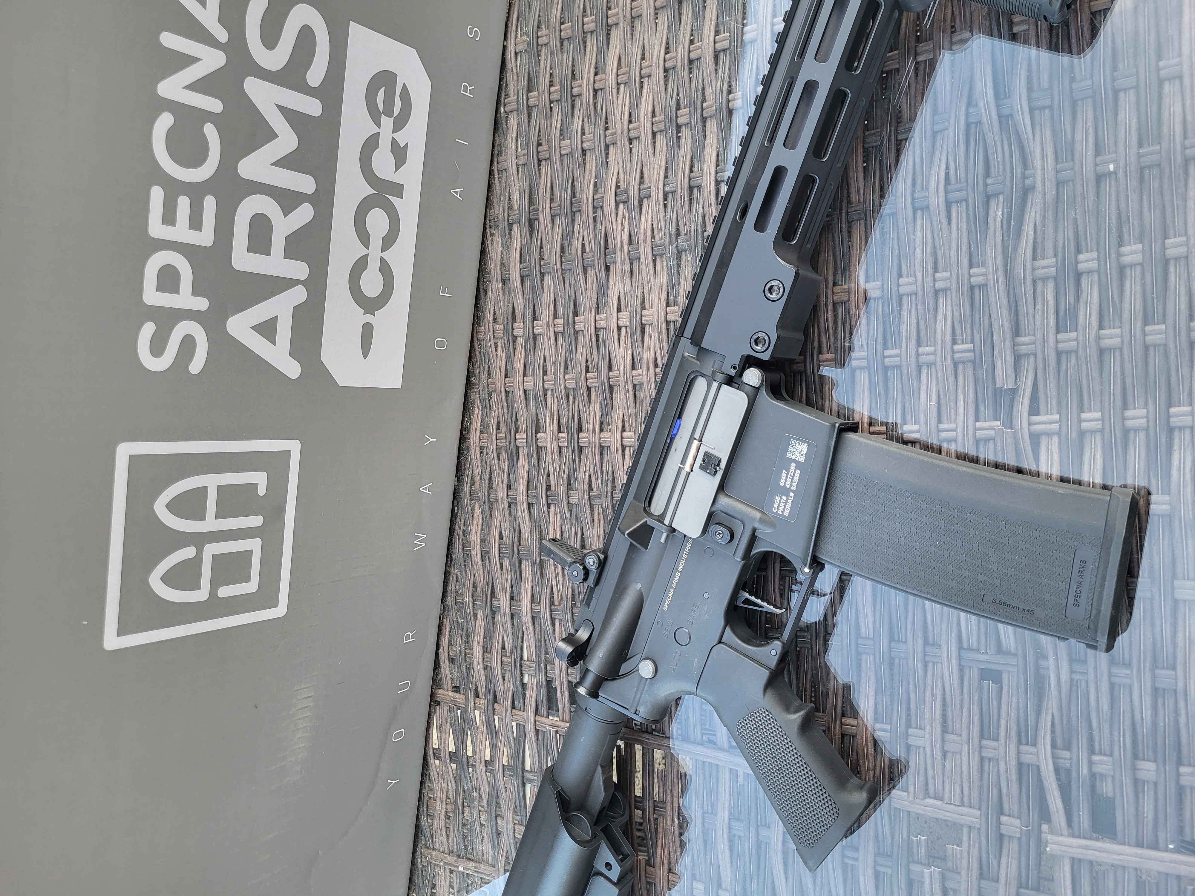 Witam Mam do sprzedania replikę Specna Arms serii Core, a dokładnie model C22. Replikę posiadam od 14 lutego 2026 czyli niecałe 3 miesiące, byłem z nią na jakiś 6 strzelankach, Karabin posiada metalowy front w systemie M-LOK, reszta natomiast jest wykonana z trwałego polimeru. W replice zrobione zostało podkładkowanie gearboxa, wstawiona żółta gumka maple leaf oraz wstawiłem rzep w gniazdo magazynka żeby nie latał na boki magazynek. Karabin bardzo celny, dał mi dużo funu podczas użytkowania, niestety przez brak czasu na hobby jestem zmuszony sprzedać sprzęt do Airsoftu. Karabin posiada drobne ślady użytkowania (rysy), a tak jest w pełni sprawna -podaje, strzela bez problemu Do zestawu dołączam 1 magazynek typu high cap, chwyt przedni oraz przejściówke z T deans na mała tamya Obecnie replika na kulkach 0.28 daje wynik 1,15 j więc idealnie pod CQB, Nigdy mnie nie zawiodła i mam nadzieje że przyszłego właściciela również :) Zainteresowanych zapraszam do kontaktu. Możliwa wysyłka lub odbiór w Poznaniu/Okolicach.