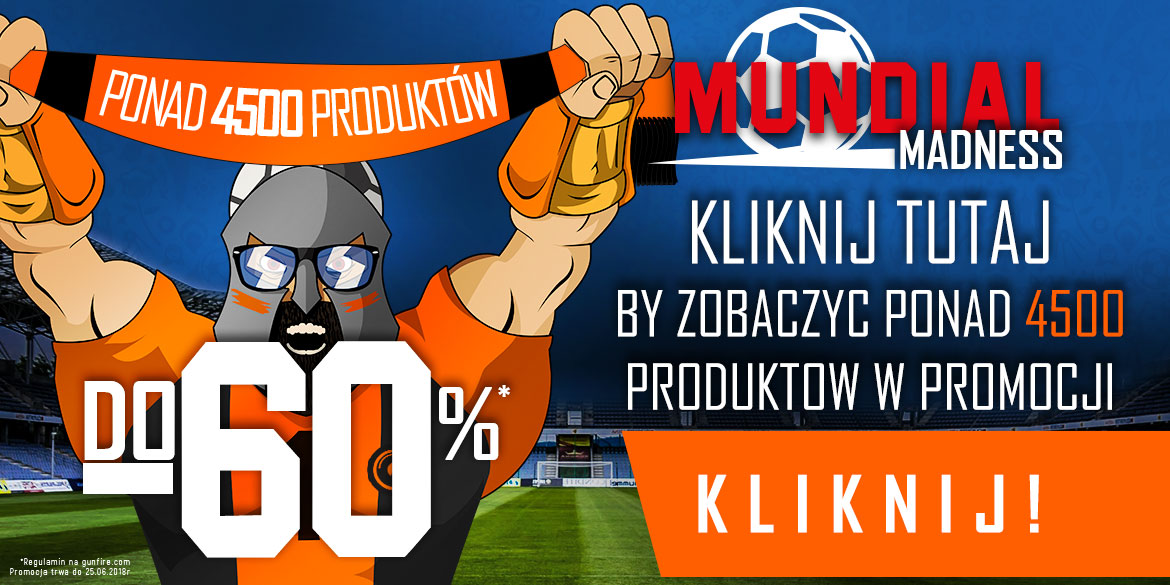 Gorąca atmosfera mundialu zapanowała również w Gunfire. Ruszamy z mistrzowskimi przecenami! Startuje Mundial Madness! Na pierwszy strzał 4500 produktów i przeceny nawet do 60%. W składzie promocji znajdziecie takie marki jak: Amoeba, CYMA, Condor, Element, Emerson, G&G, LCT, E&L, Specna Arms, WE, VFC. A to nie wszystko! Sprawdź cały skład promocji na naszej stronie.