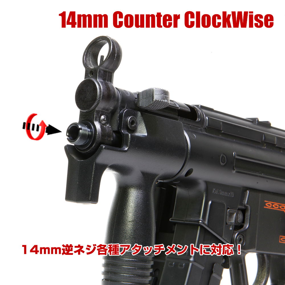 Dzięki niej, użytkownik będzie mógł bez problemu zamontować tłumik posiadający gwint 14mm. Ten w przejściówce jest lewostronny. Kompatybilny jest on z replikami MP5KA4 AEG i MP5KA4 PDW AEG firmy Tokyo Marui.