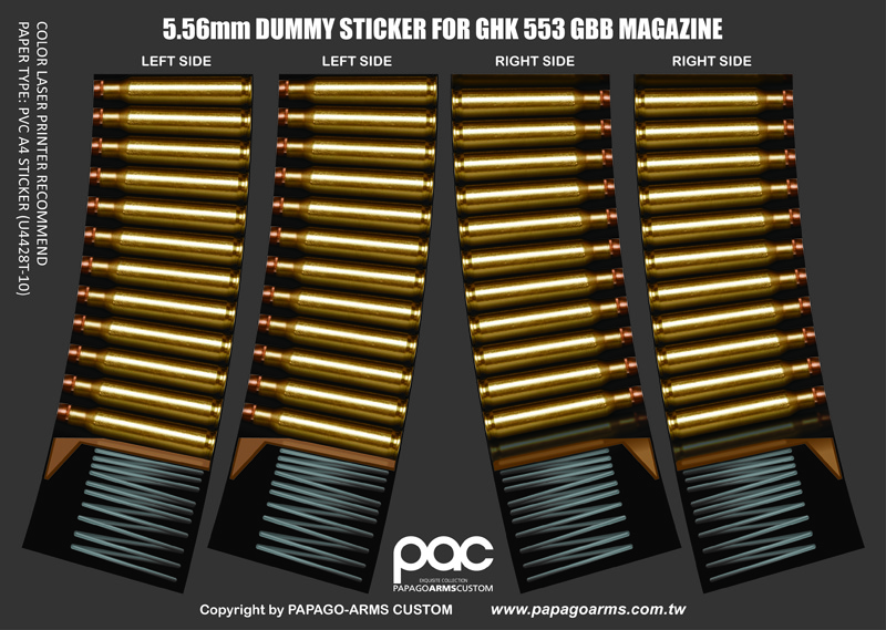 Dodatkowo, firma oferuje specjalne naklejki do magazynków imitujące amunicję. Decydując się więc na grawerowanie i naklejki z nabojami, użytkownik z pewnością podniesie poziom realistyczności swej repliki.
