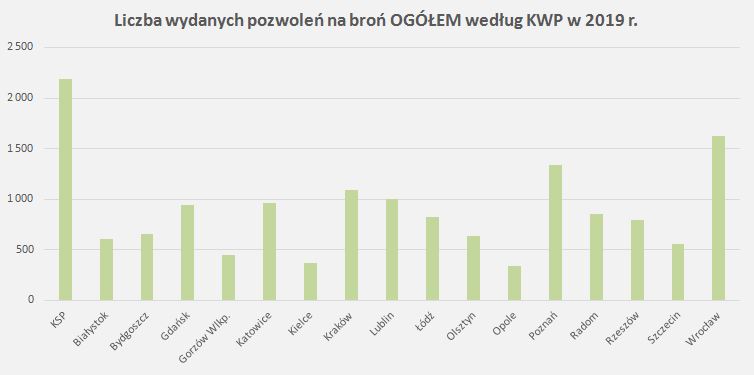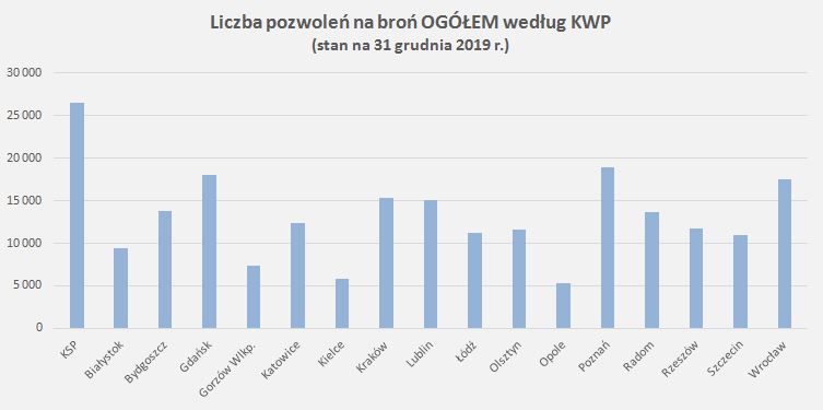 - W statystykach ilości pozwoleń przoduje województwo mazowieckie( (Warszawa i 9 ościennych powiatów) podlegające pod Komendę Stołeczną Policji - 14,4% wszystkich wydanych pozwoleń w Polsce - ogółem 2185; Najmniej pozwoleń wydano w Opolu 337 (2,2% ogółu);