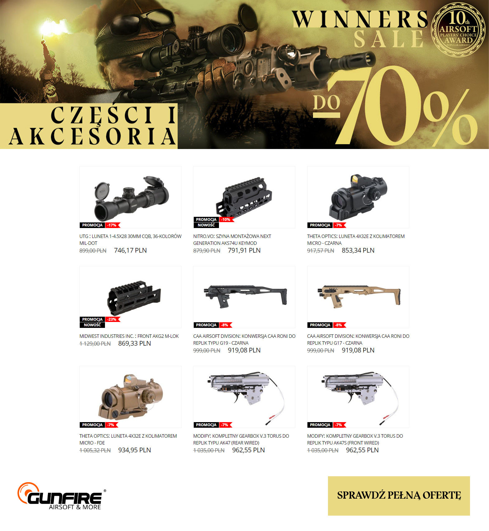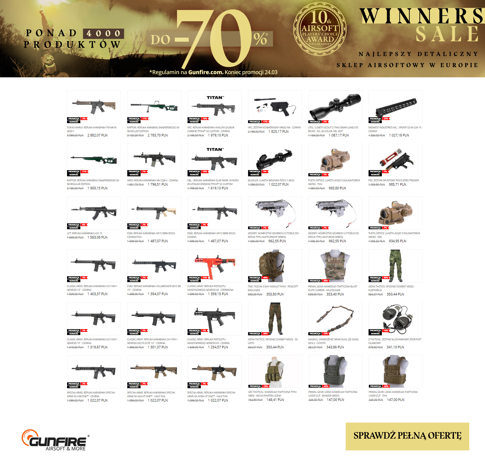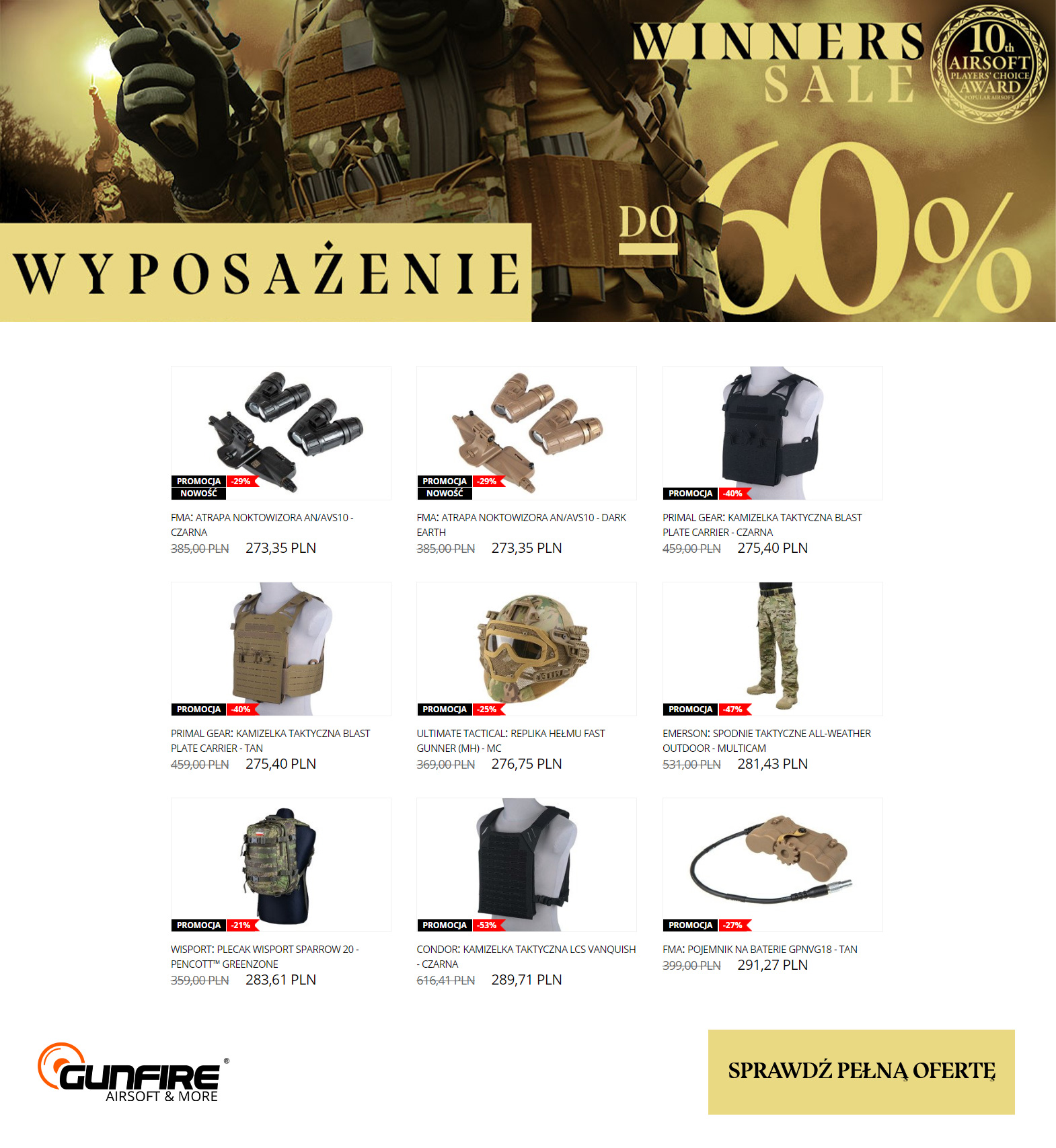 Dziękujemy Wam za wsparcie i ruszamy z jedną z największych promocji tego roku! Ponad 4000 produktów do -70% a wśród nich sprzęt od takich marek jak WE, VFC, AMOEBA, FMA, Lonex czy TMC. Świętuj z nami i oszczędzaj na upragnionym wyposażeniu!