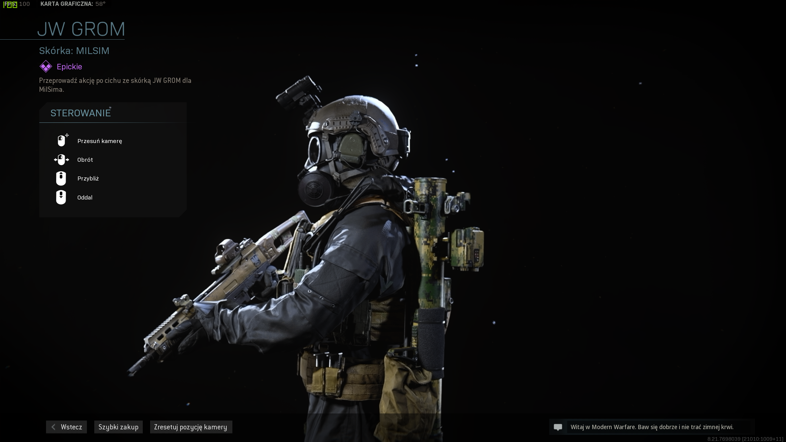 Operator GROM w CoD wyposażony jest w charakterystyczne dla naszej jednostki - czarny taktyczny kombinezon z kapturem (w oryginale produkcji firmy KAMA) oraz maskę przeciwgazową firmy AVON CT-12.