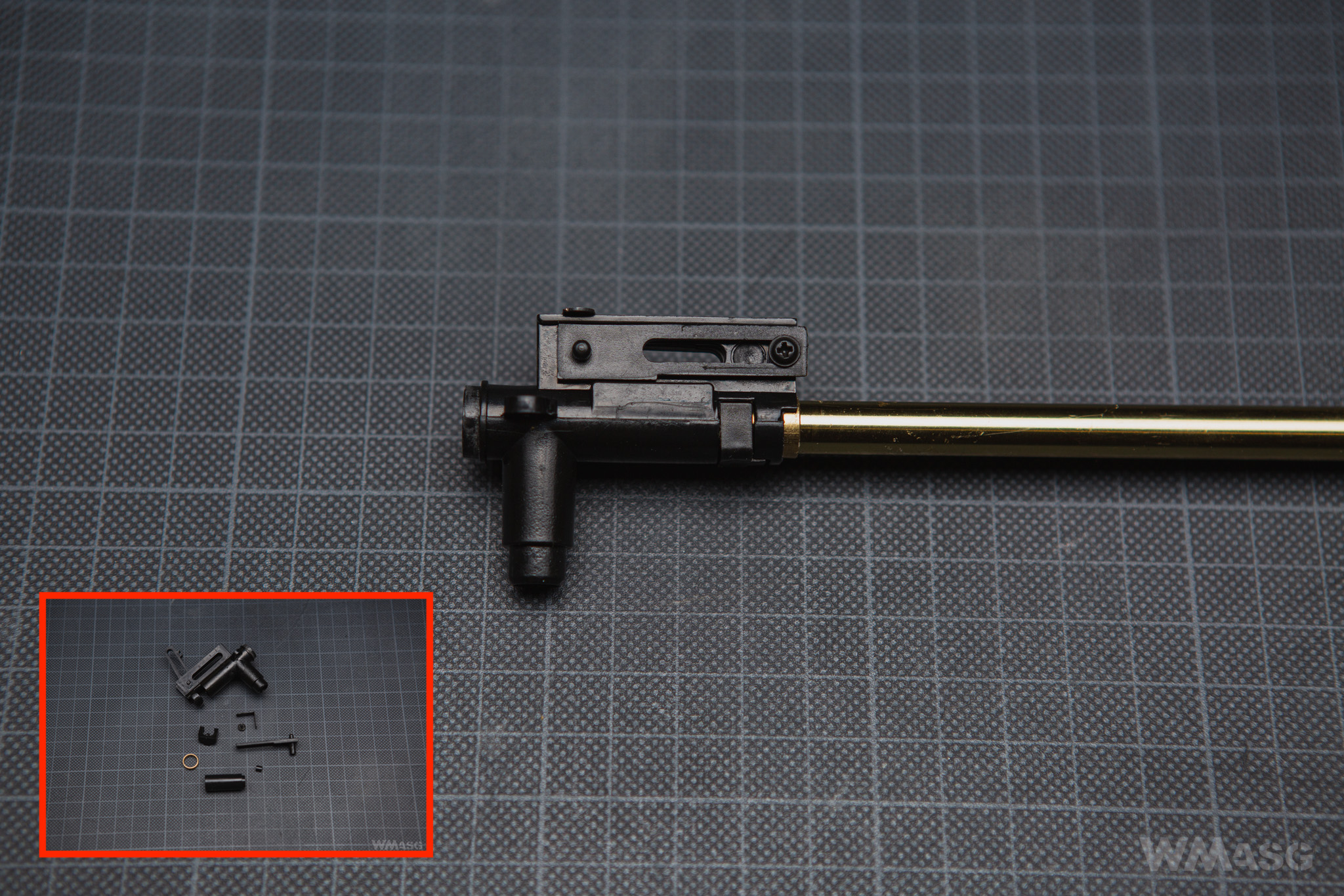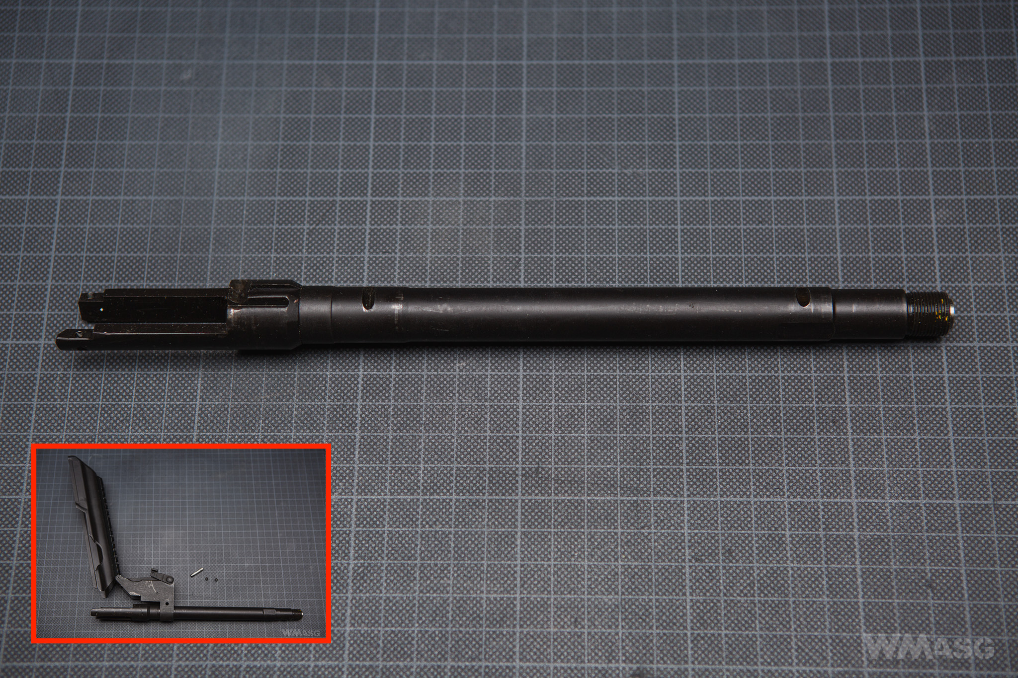Lufa zewnętrzna repliki jest stalowa i oksydowana. Nietypowy jest sposób jej demontażu - koniecznego do wyjęcia gearboxa.