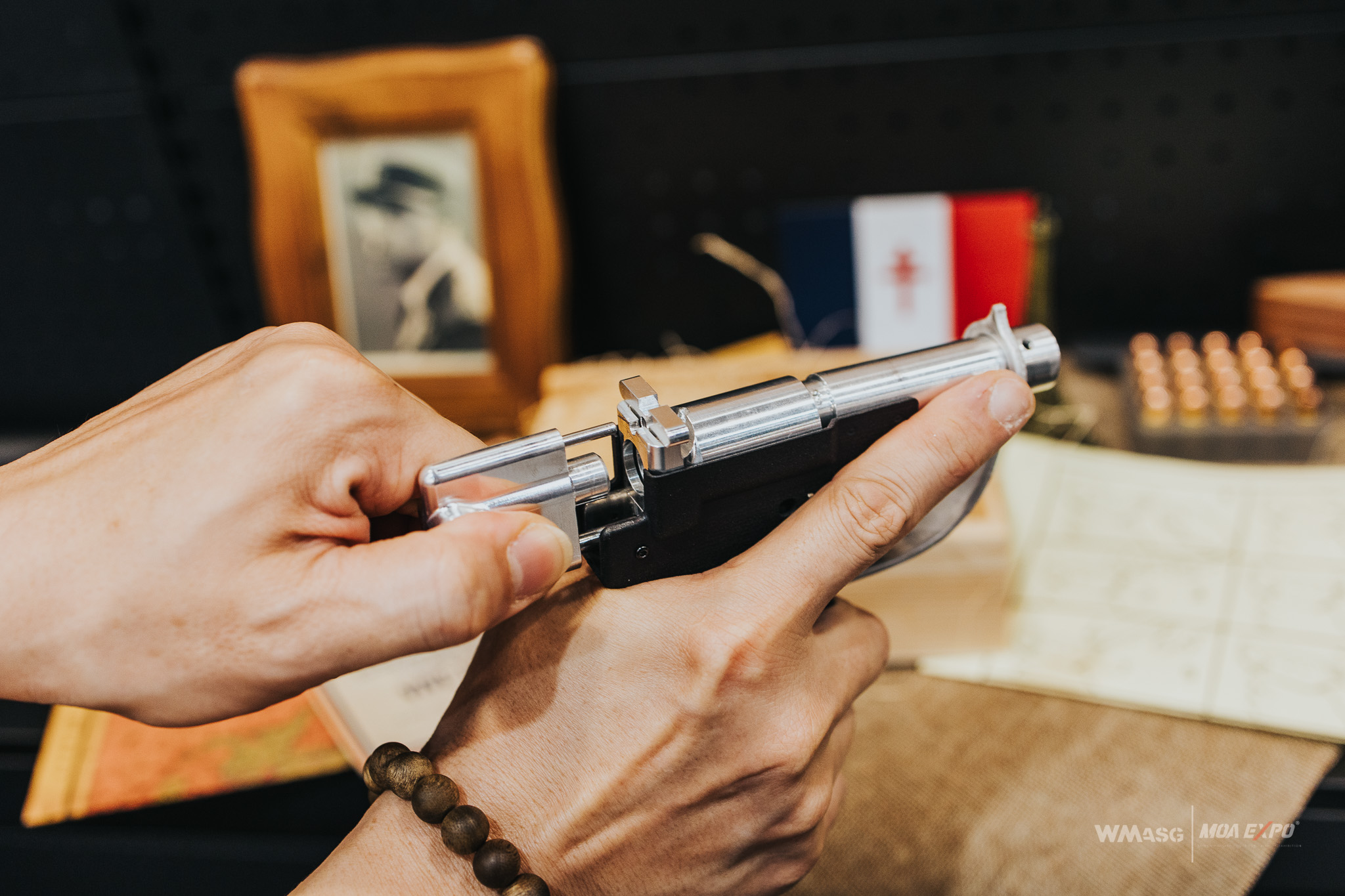 Amerykańska konstrukcja pierwszej lub ostatniej szansy (zależy jak na to patrzeć). Konstrukcja oparta o nabój .45 ACP była dość minimalistycznie przygotowywana i szeroko dystrybuowana na okupowanych terenach. Opiera się o koncepcję taniego, jednostrzałowego pistoletu, którą podąża również replika. Zaprezentowana na stoisku ( i zdjęciach) replika FP-45 Liberator to wariant z polimerowym korpusem przeznaczonym na rynek Japonii.