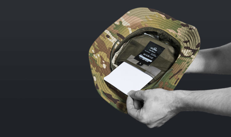 Kapelusz ma wszyty w środku drut, który pozwala dopasować go do kształtu głowy użytkownika. Oprócz tego, można go dodatkowo regulować jego obwód przy pomocy paracordu. Nie zabrakło oczywiście też taśm, do których można przymocować roślinność.