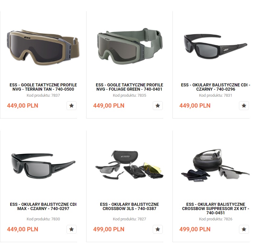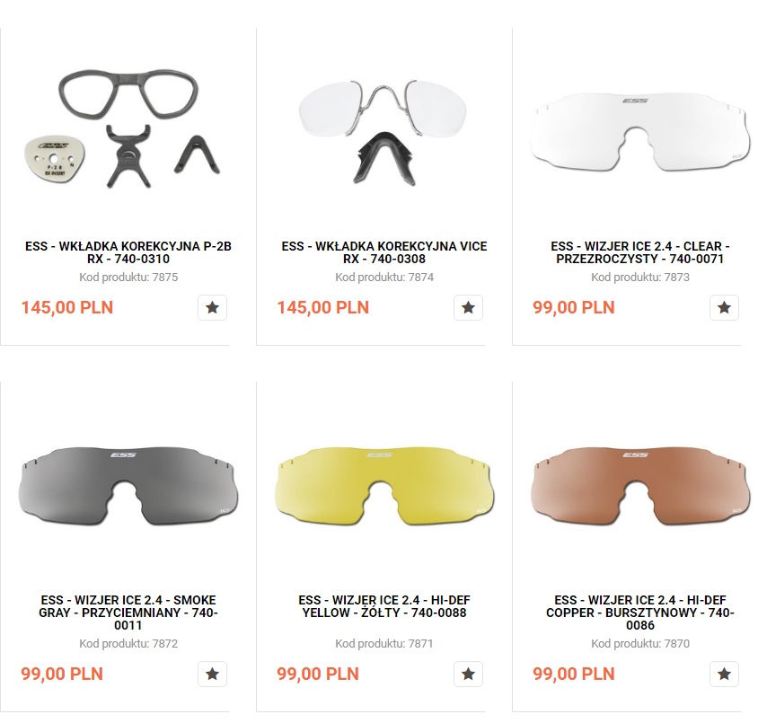 Wśród produktów firmy ESS znajdziemy środki do konserwacji, gogle, okulary, wizjery i inne części zamienne do nich.