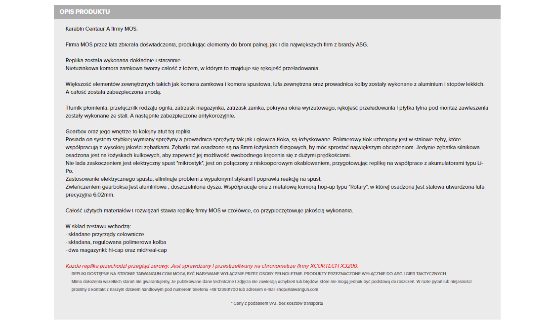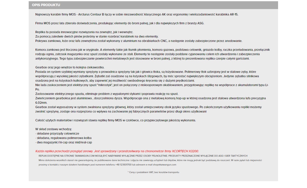 Zaprezentowane modele wyglądają interesująco, a już wkrótce na naszej stronie zostanie zaprezentowana recenzja jednej z nich. Mowa o modelu CENTAUR B CARBINE, wzorowanym na słoweńskim Arex AKB15, będącym wciąż w fazie prototypowej. Pomimo nawiązywania do konstrukcji klasycznych, design zwłaszcza replik Centaur A i Centaur B wyróżnia się na tle pozostałych konstrukcji w sposób wystarczający. Jest to wspaniała opcja dla osób, które pragną mieć replikę odróżniającą się od reszty, ale nie chcą posiadać platformy która nie będzie standardowa, a przez to niekompatybilna z wieloma częściami. Dzięki temu, dostępność akcesoriów i elementów zamiennych, takich jak magazynki, części gearboxa, celowniki i podobnych nie będzie problemem.