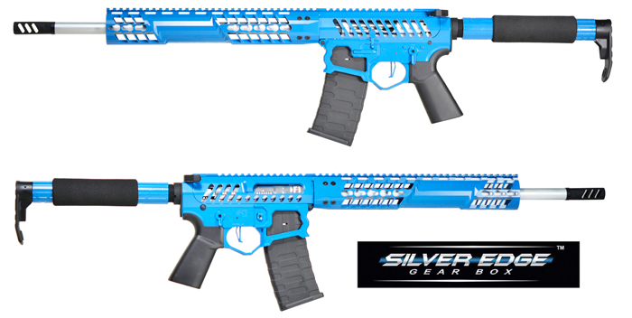 Gearbox repliki posiada system szybkowymiennej sprężyny, a ta dołączona do zestawu ma gwarantować prędkość wylotową na poziomie 385-410 fps.