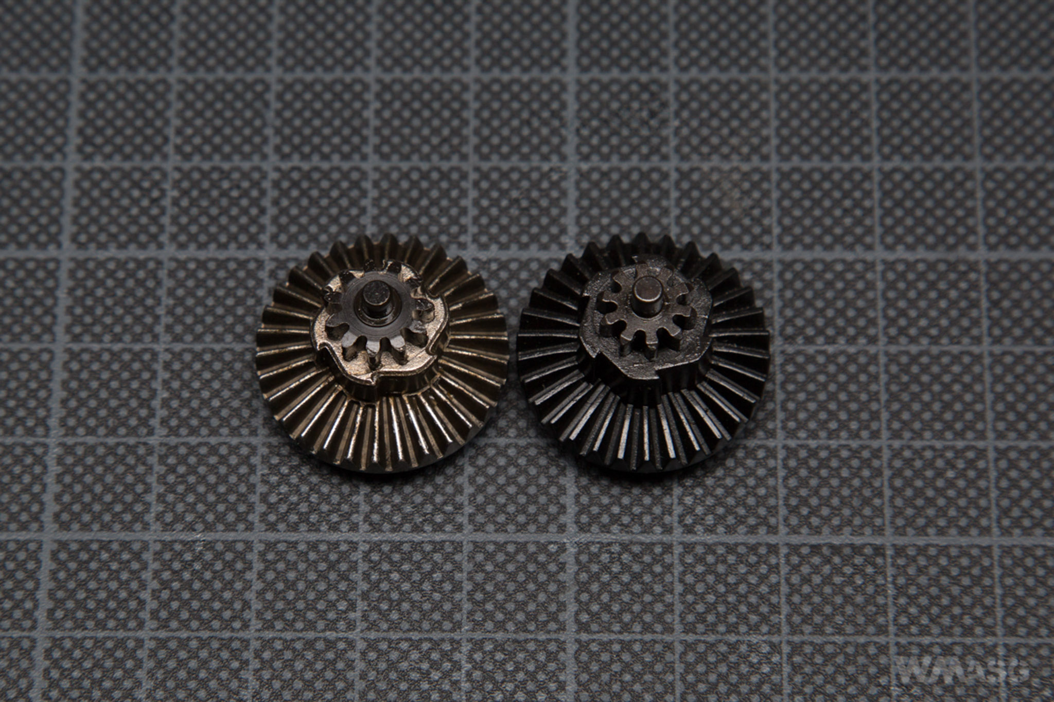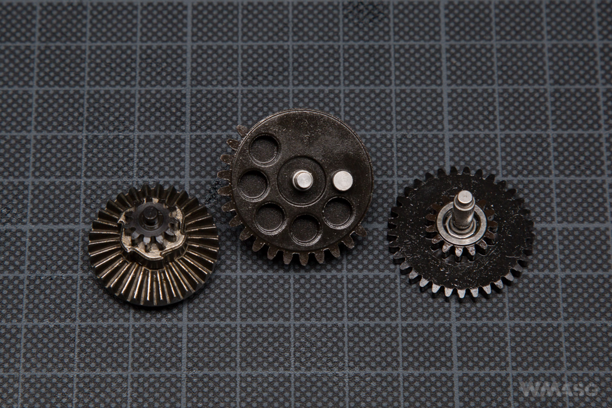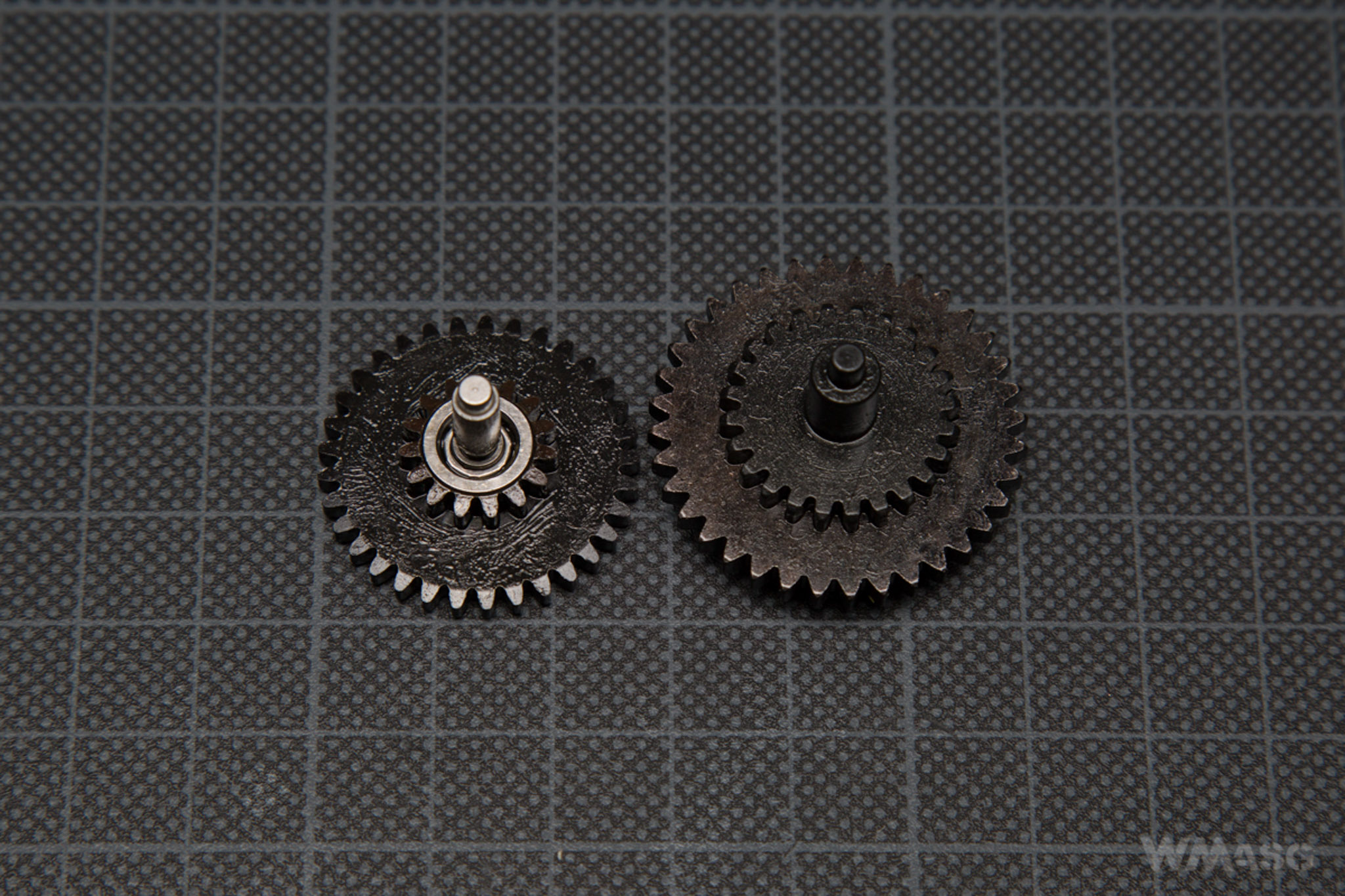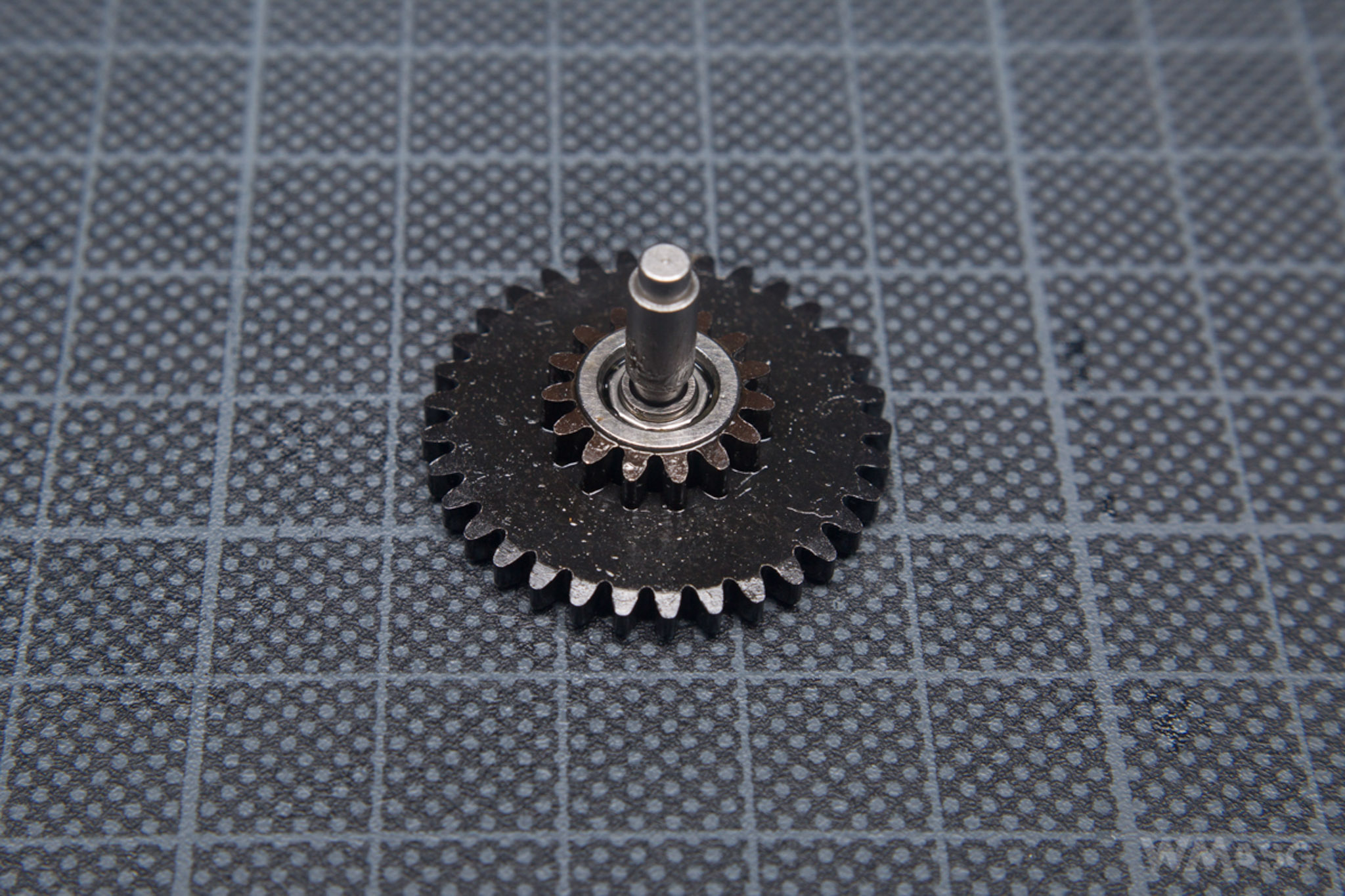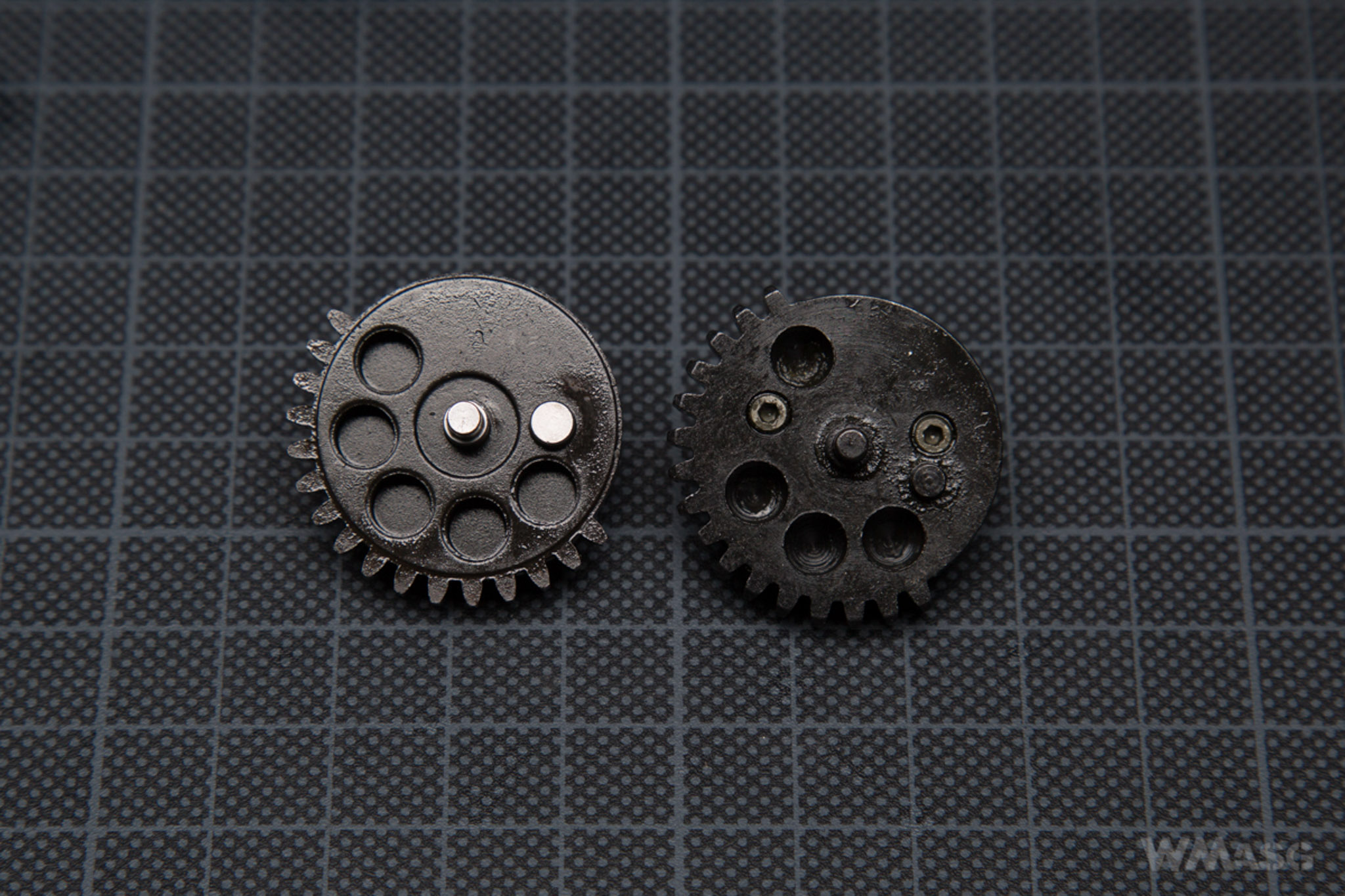 Według mnie stanowczo zbyt zegarmistrzowski w konstrukcji i wymiarach – pierścień Seegera utrzymujący na miejscu sprężynkę zatrzasku ma niecałe 3mm średnicy zewnętrznej. Zgubić lub skrzywić łatwo. Zdjąć trudno. Założyć jeszcze trudniej. Niestety demontaż zatrzasku jest niezbędny do otwarcia gearboxa. Pomysł na mocowanie sprężynki odpowiadającej za powrotny ruch atrapy zamka równie zegarmistrzowski.