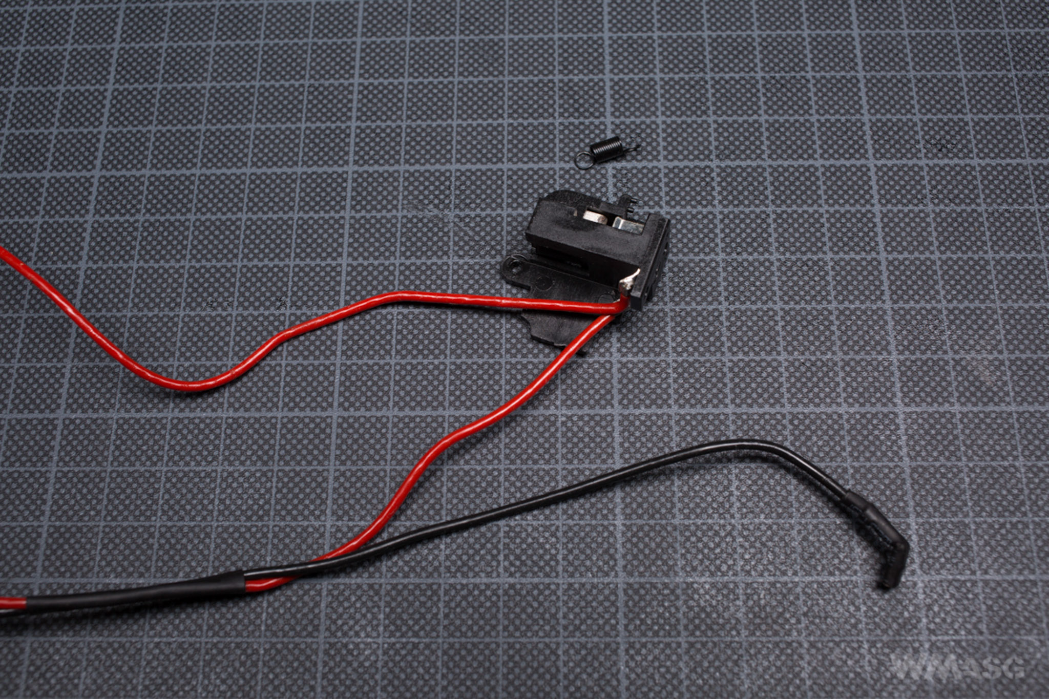 Zespół styków, blokada spustu i współpracujące sprężynki również to również standard. Przewody elektryczne są sztywne, cienkie i w twardej izolacji.