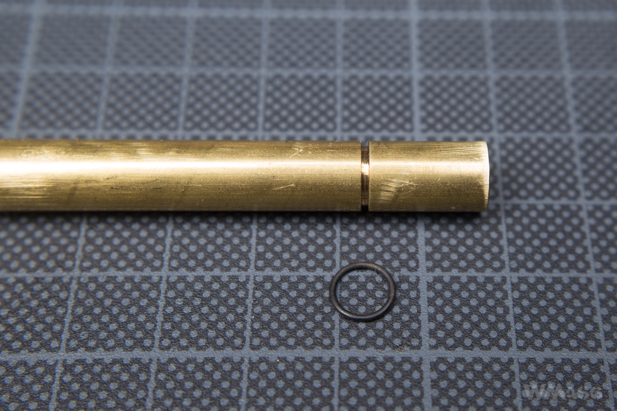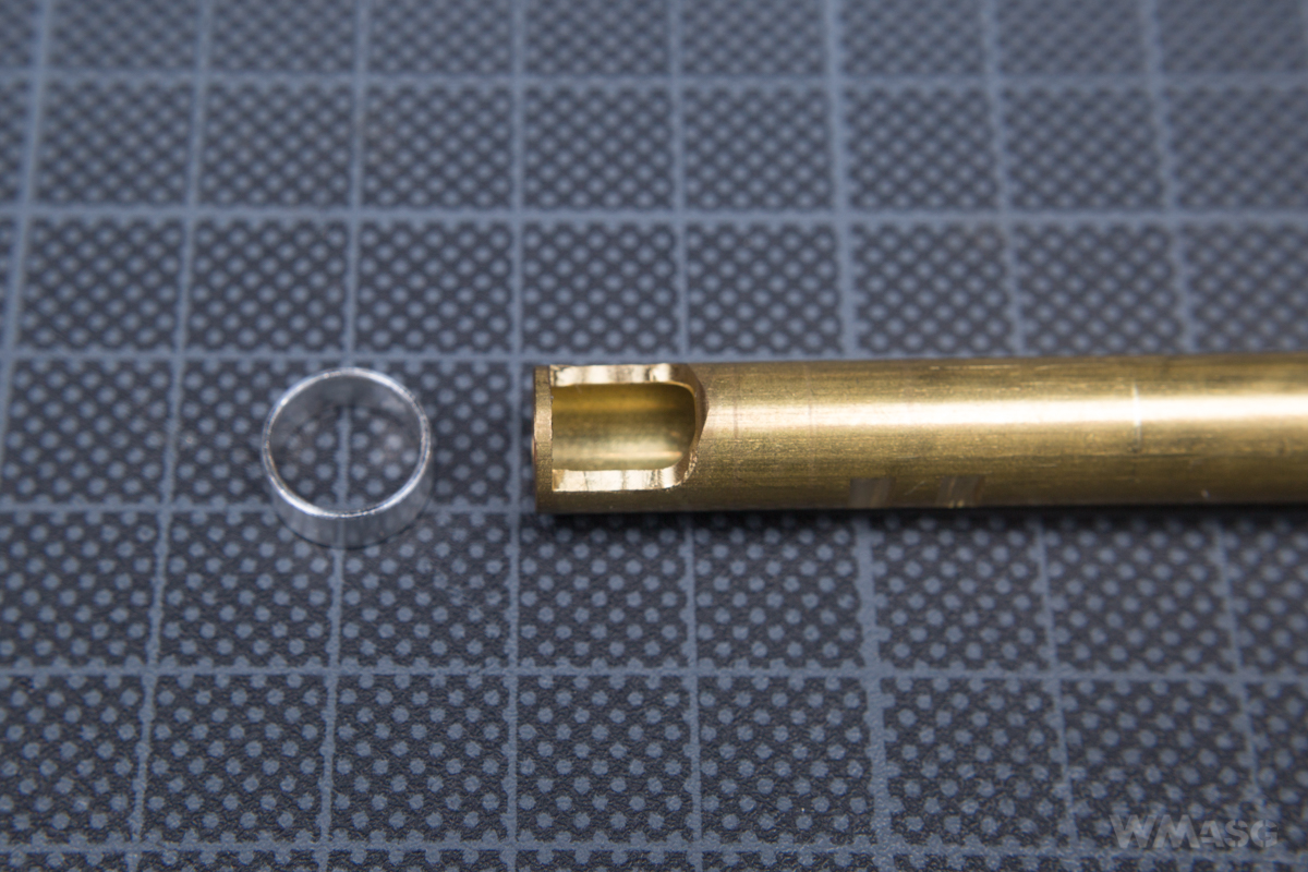 U wylotu niewielkie przetoczenie, w którym osadzono gumowy o-ring centrujący lufę.