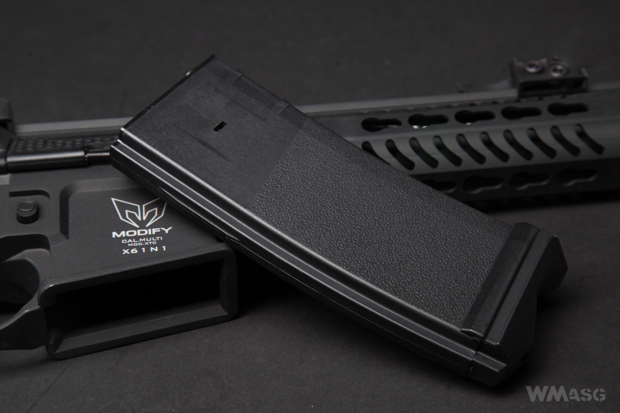 Magazynek typu mid-cap na 190 kulek jest wykonany z polimeru. Siedzi w gnieździe z minimalnym luzem.