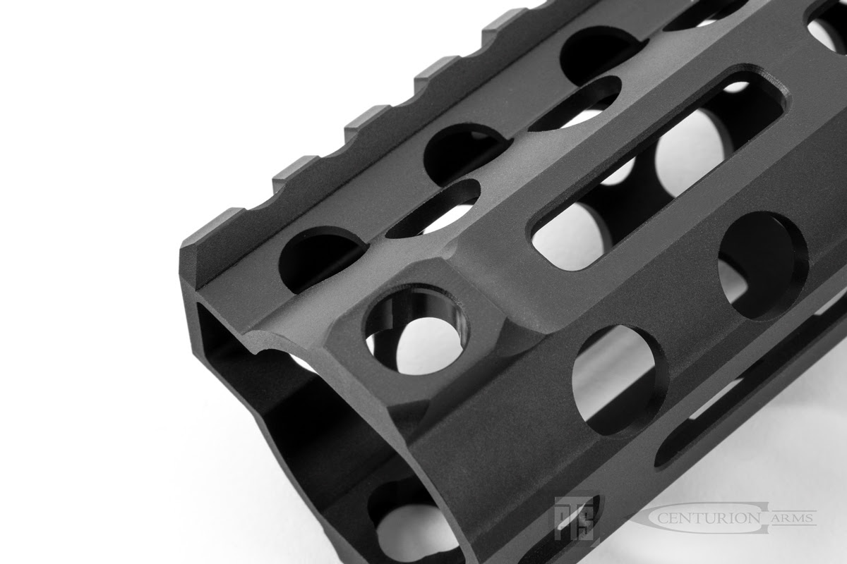 Chwyt przedni PTS Centurion Arms M-LOK CMR, ma posiadać długość 13,5 cala (345 mm), a jego montaż zapewni tak zwaną lufę pływającą. Oznacza to, że sama lufa zewnętrzna nie posiada kontaktu fizycznego z samym łożem przednim. Na jego grzbiecie odnajdziemy szynę akcesoryjną wykonaną w standardzie Picatinny, skonstruowaną tak, aby ta tworzyła nieprzerwaną linię wraz z szyną z komory zamkowej. Natomiast po bokach i od spodu, znajdują się sloty montażowe M-Lok. Dzięki temu, redukując wagę całości do minimum, jego właściciel nadal będzie mógł cieszyć się możliwością montażu dodatkowych akcesoriów, takich jak chwyt przedni, panele ochronne, latarka, czy też laser. Odnaleźć można na nim również sloty typu QD na zawieszenie, znajdują się one po stronie lewej i prawej, zarówno na początku szyny, jak i na jej końcu.