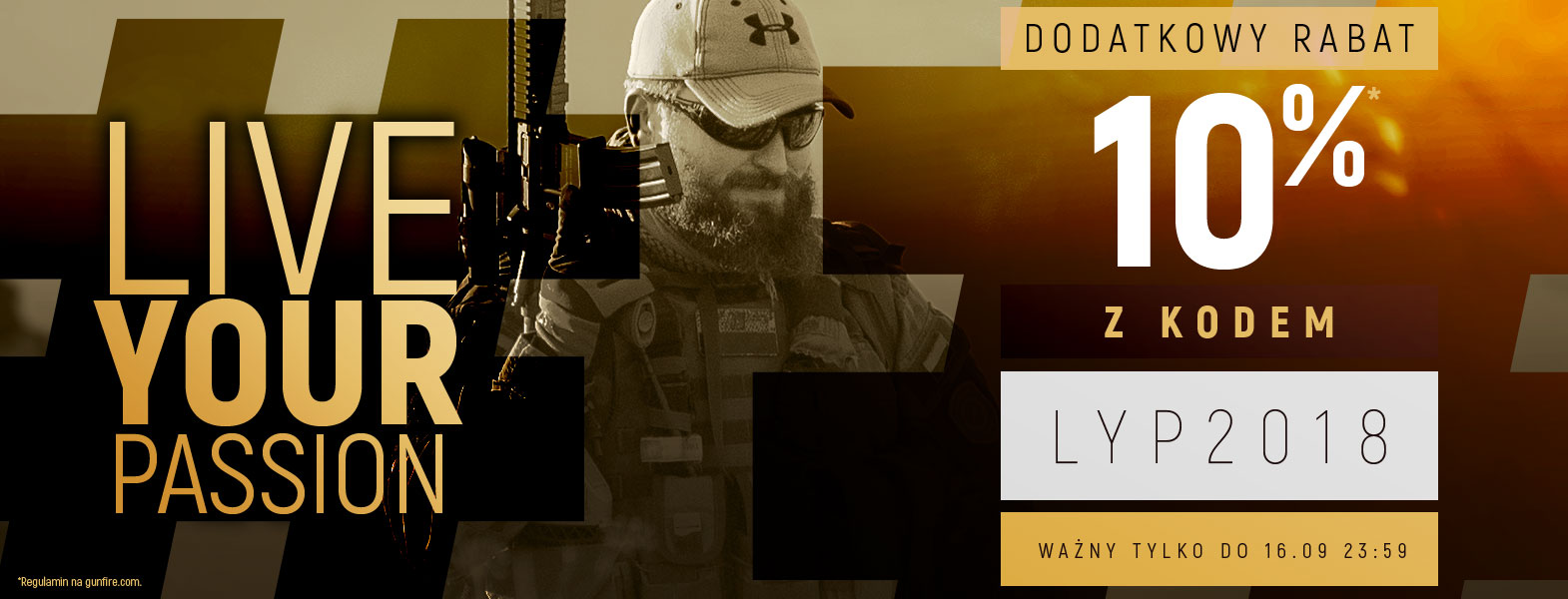 W Gunfire wiemy doskonale, że airsoft tak jak i inne pasje wymagają dobrania odpowiedniego sprzętu. Nowa replika i ciekawe akcesoria dadzą Ci sporo frajdy podczas następnej strzelanki. Żeby pomóc w wyborze wymarzonego sprzętu wprowadzamy weekendowy kod promocyjny -10%. Odwiedź Gunfire, wybierz produkty, użyj specjalnego kodu: LYP2018 i ciesz się dodatkową zniżką w wysokości 10%. Co więcej, kod łączy się z promocją Live Your Passion, w której nadal czekają na Ciebie ponad 4000 przecenionych produktów. Już teraz zobacz naszą ofertę i ciesz się dodatkowym rabatem w Gunfire!