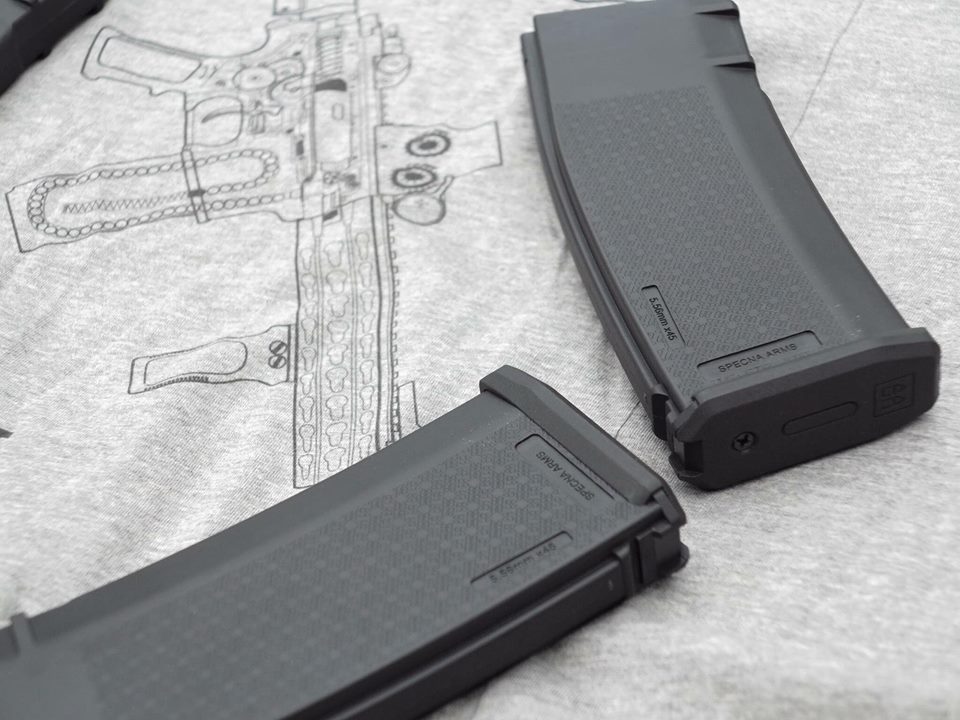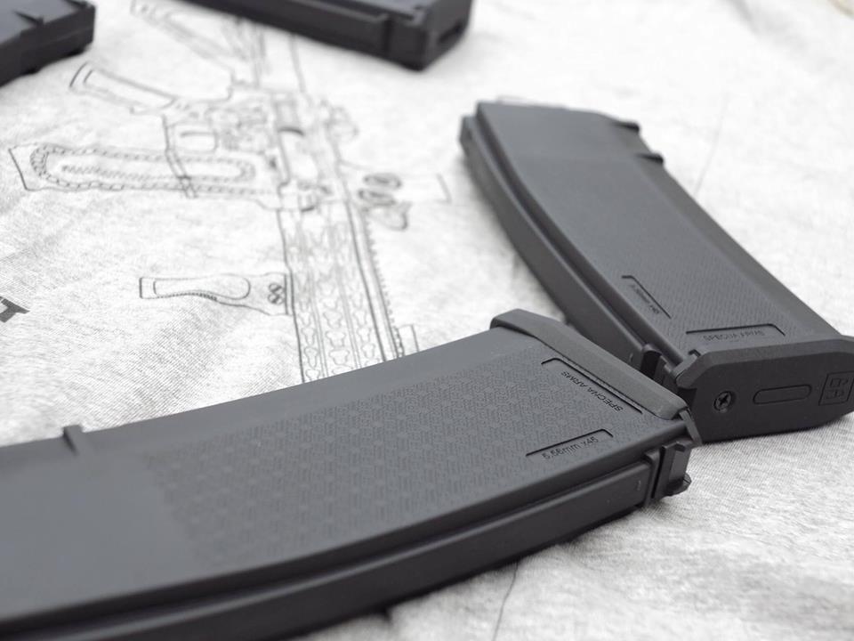 Magazynki kompatybilne będą z większością replik typu AEG, które akceptują magazynki dedykowane platformie AR-15.