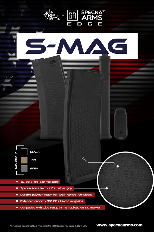 Ich obudowa ma być wykonana w pełni z wytrzymałego polimeru, na który naniesiona została tekstura mająca zmniejszać śliskość powierzchni. Do wyboru będą dwie wersje, mid-cap o pojemności 125 kulek i hi-cap mogący ich pomieścić 300. Każdy z nich dostępny będzie w kolorze czarnym, szarym i tan.