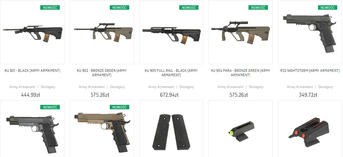 Nowe karabinki serii KU od Army Armament. Army produkuje repliki dla wielu znanych marek. Zastosowano tutaj system szybkiej wymiany sprężyny, a części są kompatybilne z elementami innych producentów.