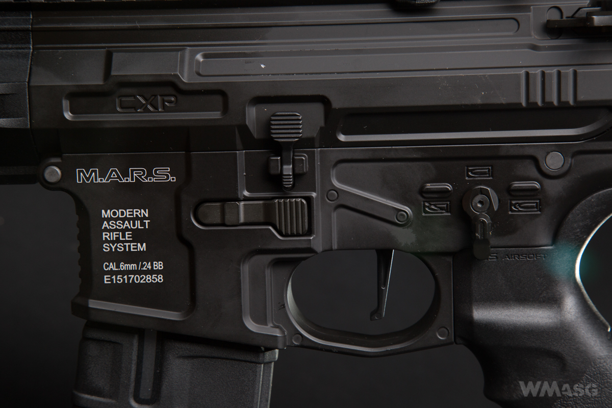 Ważną cechą serii MARS są powiększone obustronne manipulatory. Mamy tu obustronny bezpiecznik/selektor, obustronny zwalniacz magazynka oraz obustronne, powiększone skrzydełka dźwigni przeładowania.  Obustronne jest również mocowanie pasa umieszczone pomiędzy korpusem, a kolbą.