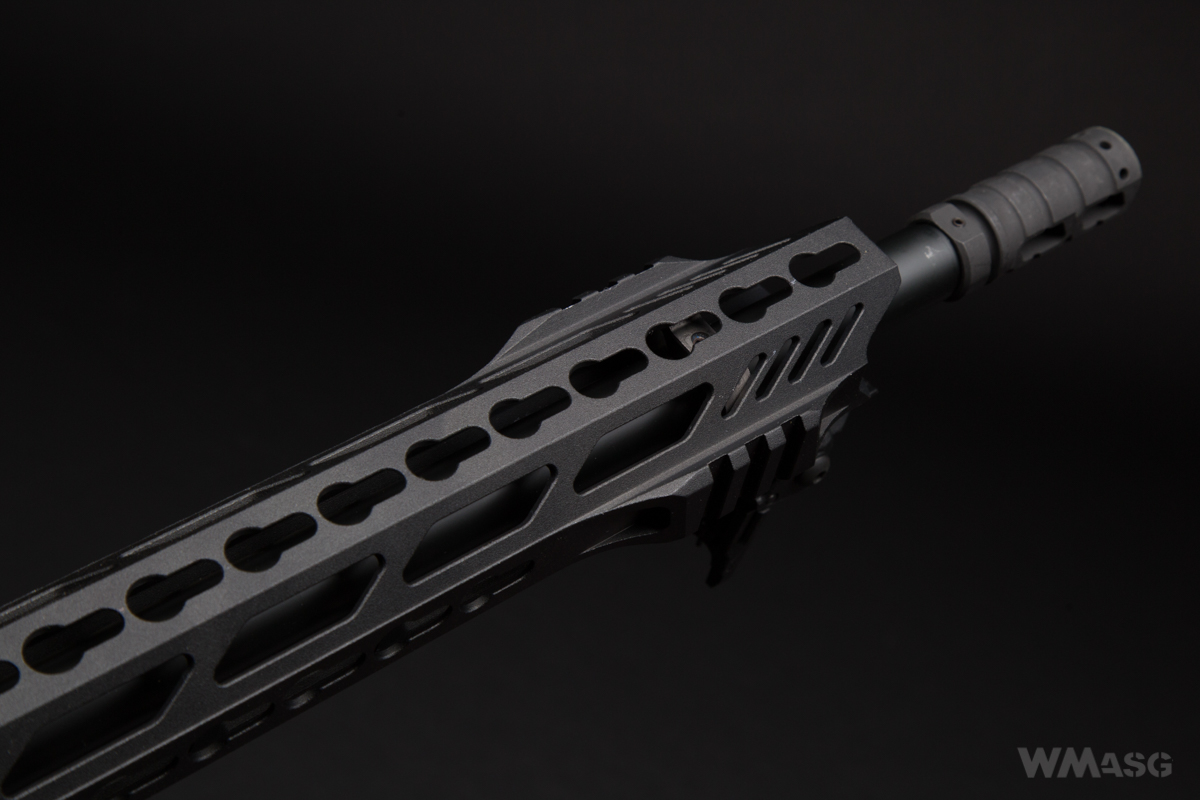 Pod łożem, na lufie zewnętrznej nie zamontowano atrapy bloku ani przewodu gazowego.  Sama lufa składa się z 2 elementów. Zakończona jest urządzeniem wylotowym o nazwie Raider z gwintem lewostronnym 14 mm zabezpieczonym dodatkowo wkrętem dociskowym 1,5 mm.