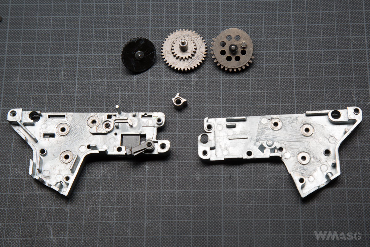 Identycznie jak w replikach opisywanej w innym miejscu serii MMR sercem repliki jest znany dwudzielny gearbox dodatkowo posiadający możliwość szybkiej wymiany sprężyny. Po złamaniu karabinka można wymienić samą sprężynę lekko wciskając i obracając o 45 stopni prowadnicę. Całą górną część gearboxa można równie łatwo wyciągnąć pociągając ją jednocześnie z dźwignią przeładowania. W zastosowanym rozwiązaniu dźwignia jest z nim połączona. Nie ma za to sprężyny łączącej dźwignię z komorą zamkową.