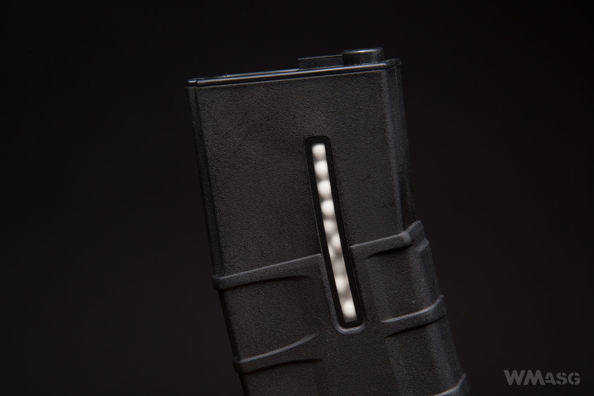 Wykonany z polimeru hi-cap ma pojemność 300 kulek. Jest podobny do magazynków PMAGz okienkiem. Przez  okienko można w przybliżeniu kontrolować zapas amunicji. Sprężyna magazynka nakręcana pokrętłem w denku. Klapka do napełniania zamyka się z wyraźnym „klik” i nie otworzy się sama. Otwarta porusza się bardzo lekko – trzeba uważać podczas napełniania magazynka.