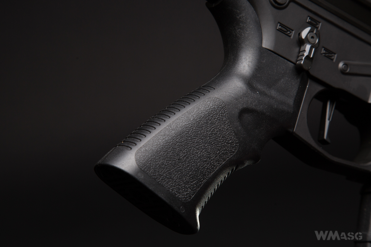 Karabinek wyróżnia się zastosowanym chwytem pistoletowym. Jest to chwyt z grup tak zwanych ergonomicznych, wyprofilowanych w sposób uniwersalny, dla strzelców prawo- i leworęcznych. W przedniej i tylnej części chwyt posiada bardzo wyraźną fakturę. Denko chwytu jest żebrowane, w całości ażurowe dla lepszego chłodzenia silnika. Brak podkładki dystansowej. Wklejone gwintowane mosiężne tulejki do wkręcania śrub mocujących denko. Regulacja silnika kluczem imbusowym 4 mm.