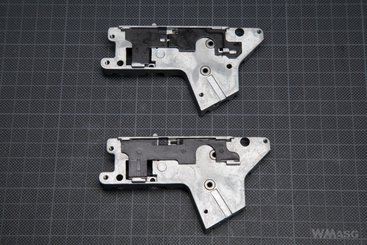 Dla porównania: u góry gearbox MARS-a z blowbackiem, na dole "zwykły" gearbox ICS.