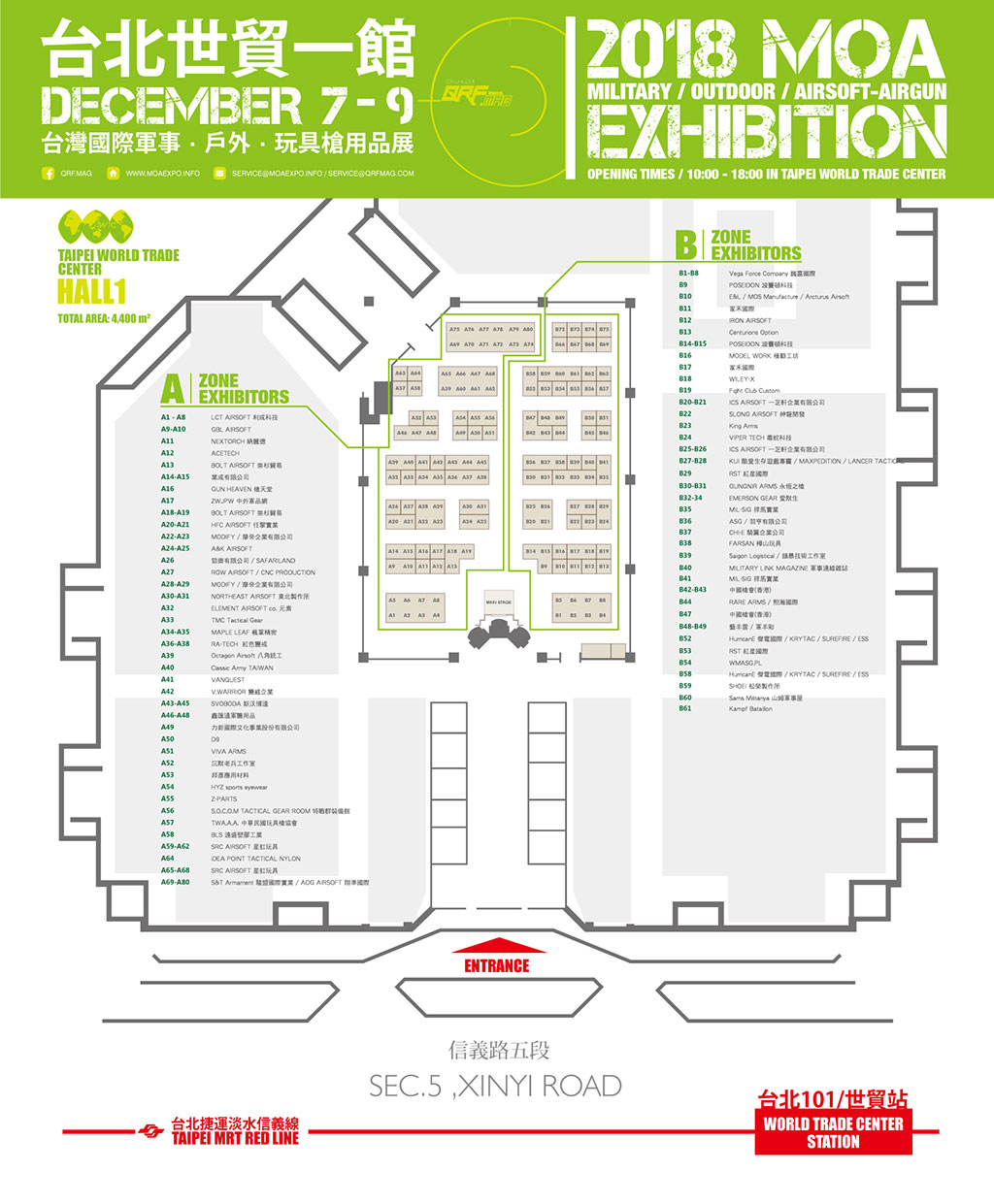 2018 MOA EXHIBITION w tym roku odbędzie się w Taipei World Trade Center, w centrum Taipei City, najbardziej profesjonalnym międzynarodowym centrum wystawowym na Tajwanie. W tym roku podczas MOA wystawi się blisko 100 znanych na całym świecie wystawców airsoftowych, militarnych i survivalowych.