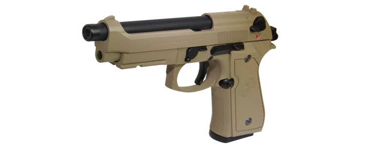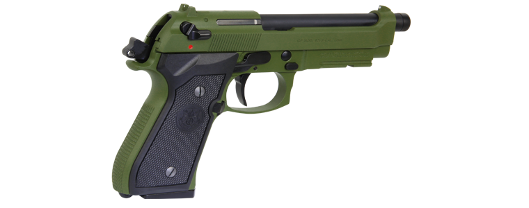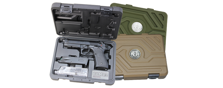 Pistolet dostępny jest w trzech wersjach kolorystycznych: czarnej, zielonej i piaskowej. Każda z wersji zapakowana jest w walizkę w takim samym kolorze.
