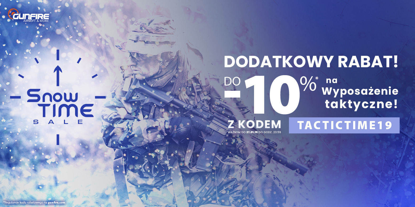 Czas na przegląd wyposażenia! Uzupełnij swój airsoftowy ekwipunek o zupełnie nowe, ciekawe produkty i oszczędź dodatkowe 10% na taktyce z kodem promocyjnym TACTICTIME19. Kod łączy się z promocją Snow Time w której znajdziecie ponad 2500 produktów do -75%!