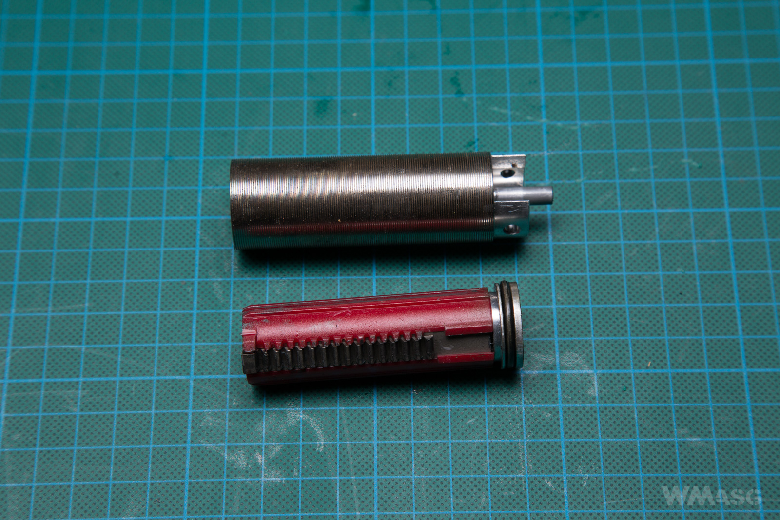 W standardzie mamy zatem stalowe koła zębate pracujące na łożyskach kulowych, tłok z pełną stalową szczęką i aluminiowe głowice cylindra i tłoka, przy czym ta druga posiada pełne łożyskowanie,