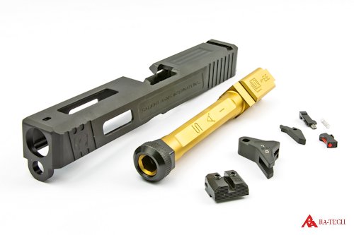 na pewno wyróżniający się na airsoftowym polu walki. Zestawy oferowane są do Glocka 17 Gen3 firmy VFC i składają się ze: stalowych, wykonanych metodą CNC zamka i lufy, stalowych części zespołu spustu, aluminiowego języka spustowego, stalowej nakrętki na zewnętrzny gwint lufy, stalowych przyrządów celowniczych.