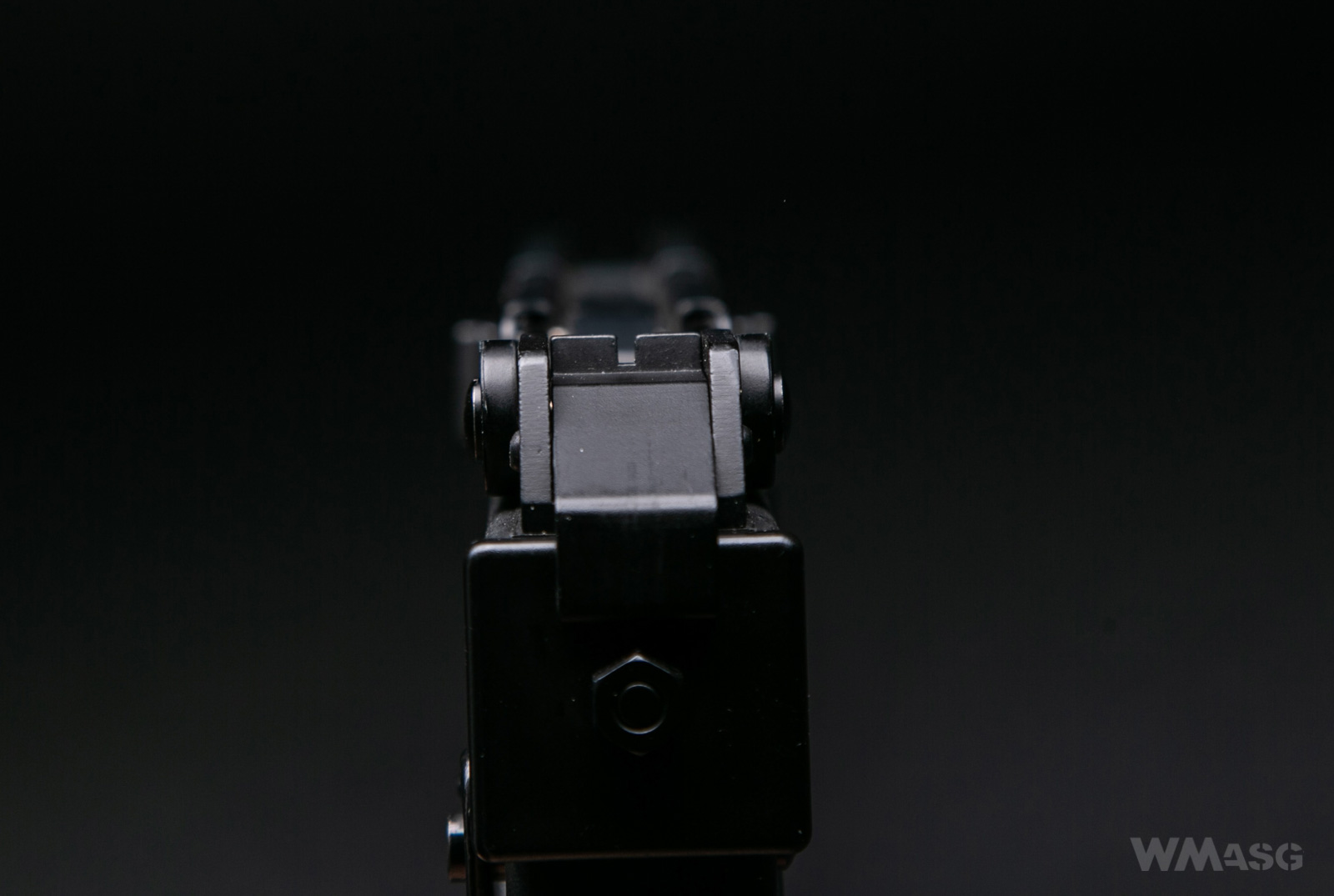 Korzystając z obustronnych uchwytów można ją nieznacznie odciągnąć do tyłu. Dźwignia posiada własną sprężynę powrotną - odciągnięta i puszczona swobodnie wróci do położenia spoczynkowego. Cofając dźwignię przesuwamy jednocześnie element, który udaje zamek i uzyskujemy dostęp do komory HopUp. Napisałem wcześniej, że dźwignię można przesunąć nieznacznie. To "nieznacznie" oznacza zaledwie około 1 centymetra! Tylko na tyle cofa się "zamek". Dlatego regulacja systemu HopUp jest (uwaga - eufemizm) niewygodna. Lepiej posłużyć się jakimś improwizowanym narzędziem.