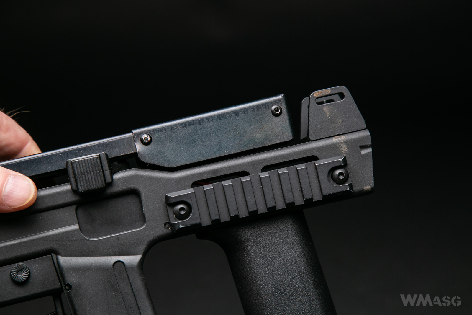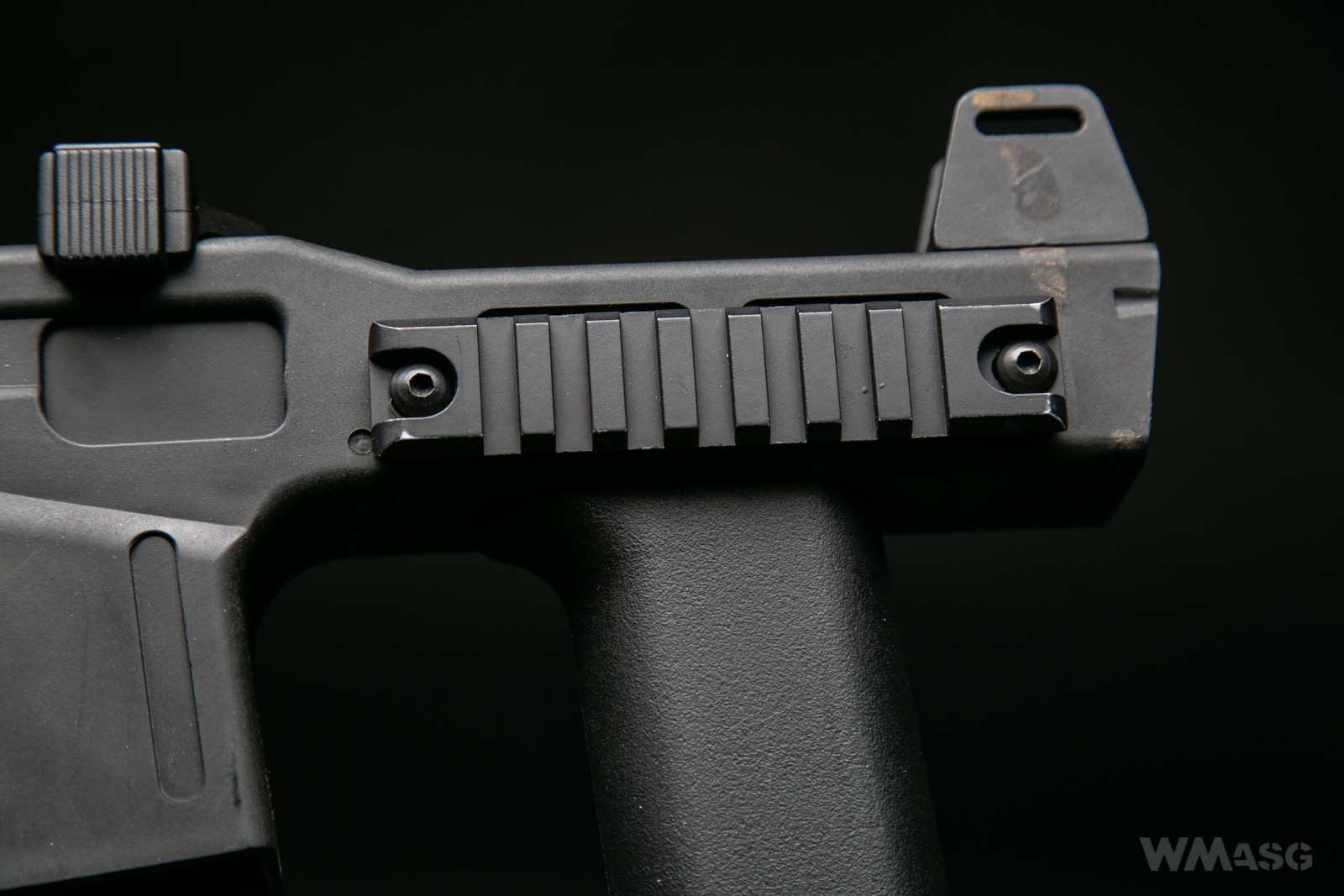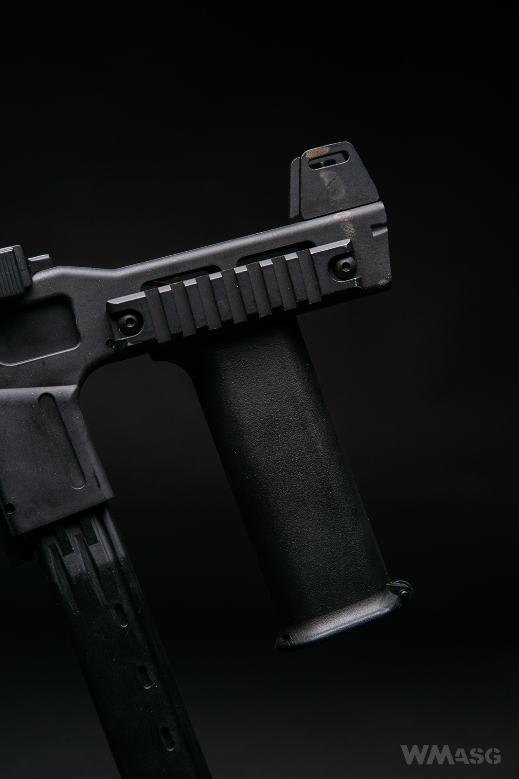 Charakterystyczną cechą repliki jest duży, lekko pochylony przedni chwyt taktyczny. W oryginale był odłączalny.