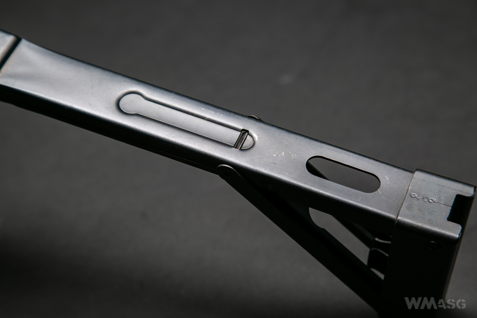 Replika niemal w całości wykonana jest z polimeru. Elementów metalowych jest zaledwie kilka: skrzydełka bezpiecznika i selektora, muszka i podstawa szczerbiny, mocowanie pasa i składana kolba. Cała reszta to wzmocniony włóknem twardy matowy polimer. Ku mojemu zdziwieniu z bliska wygląda naprawdę dobrze. Kolor i faktura zastosowanego tworzywa wyglądają "wiarygodnie". W zasadzie dopiero po wzięciu repliki do ręki orientujemy się, że pistolet nie jest metalowy. I to nie dlatego, że jest miękki czy wiotki. Chodzi wyłącznie o wyczuwalną fakturę i temperaturę.