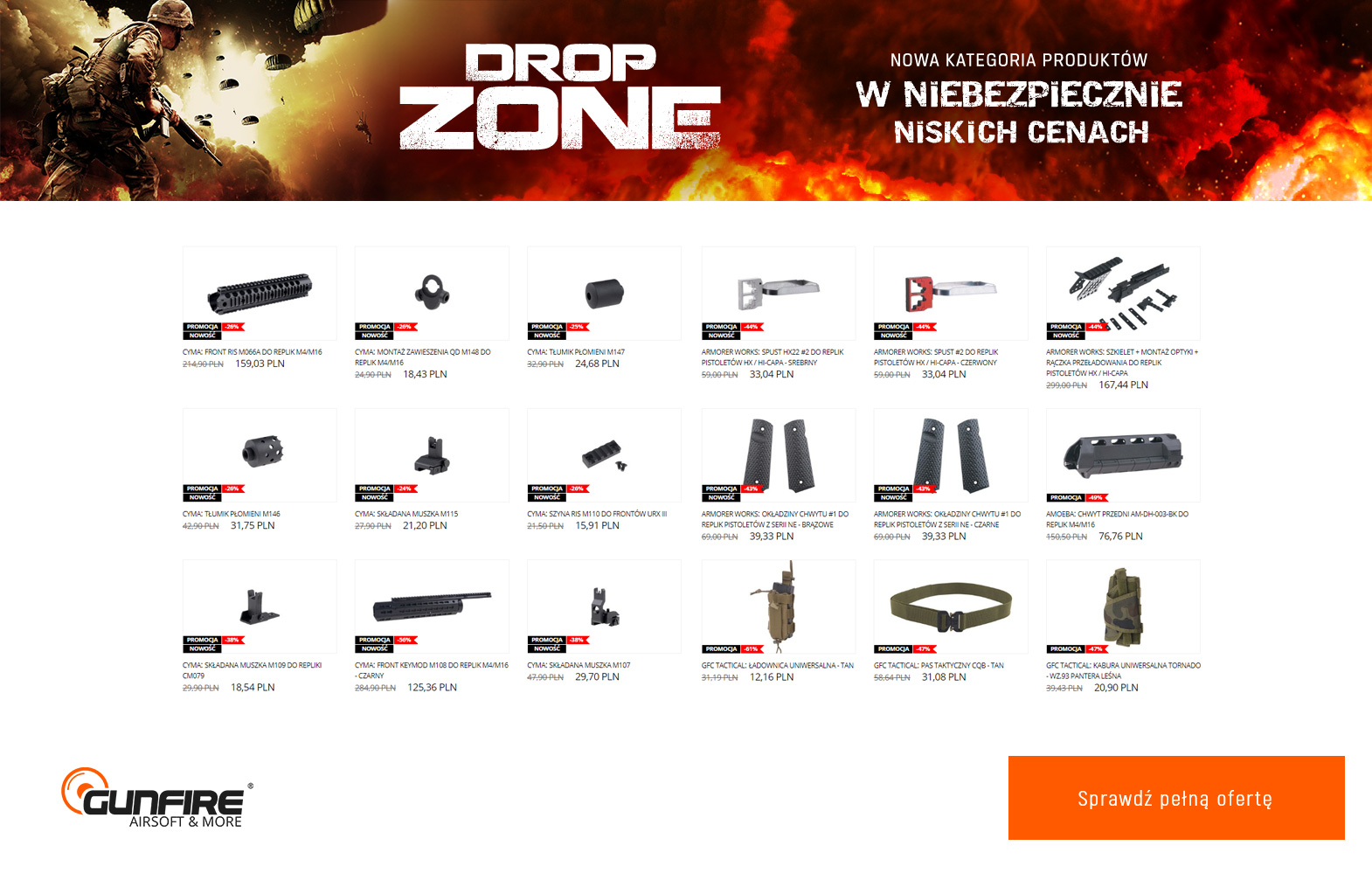 Przygotowani do nowego airsoftowego sezonu? My tak! Nie przegapcie najlepszych okazji i zniżek nawet do 75% na wybrane produkty. Skorzystajcie z rewelacyjnych zniżek na Otwarcie Airsoftowego Sezonu 2019. Obniżyliśmy ceny ponad 4000 produktów a wśród nich produkty od popularnych marek. To doskonały moment na przejrzenie Waszego ekwipunku i dokonanie niezbędnych uzupełnień. Polecamy Wam wysokiej jakości repliki karabinów z serii Nemesis od marki Classic Army, pistolety Tokyo Marui czy karabiny snajperskie od WELL niektóre z nich tańsze nawet o 33%. Przed przystąpieniem do rozgrywek warto wymienić zużyte części. W naszej ofercie znajdziecie wszystko co niezbędne od kolb i chwytów po lufy precyzyjne i gumki hop-up. A jeżeli mieliście w planach upgrade repliki to sprawdźcie jak niskie są ceny układów JeffTron Mosfet z okablowaniem. Nie przegapcie najlepszych okazji i już teraz sprawdźcie naszą ofertę.